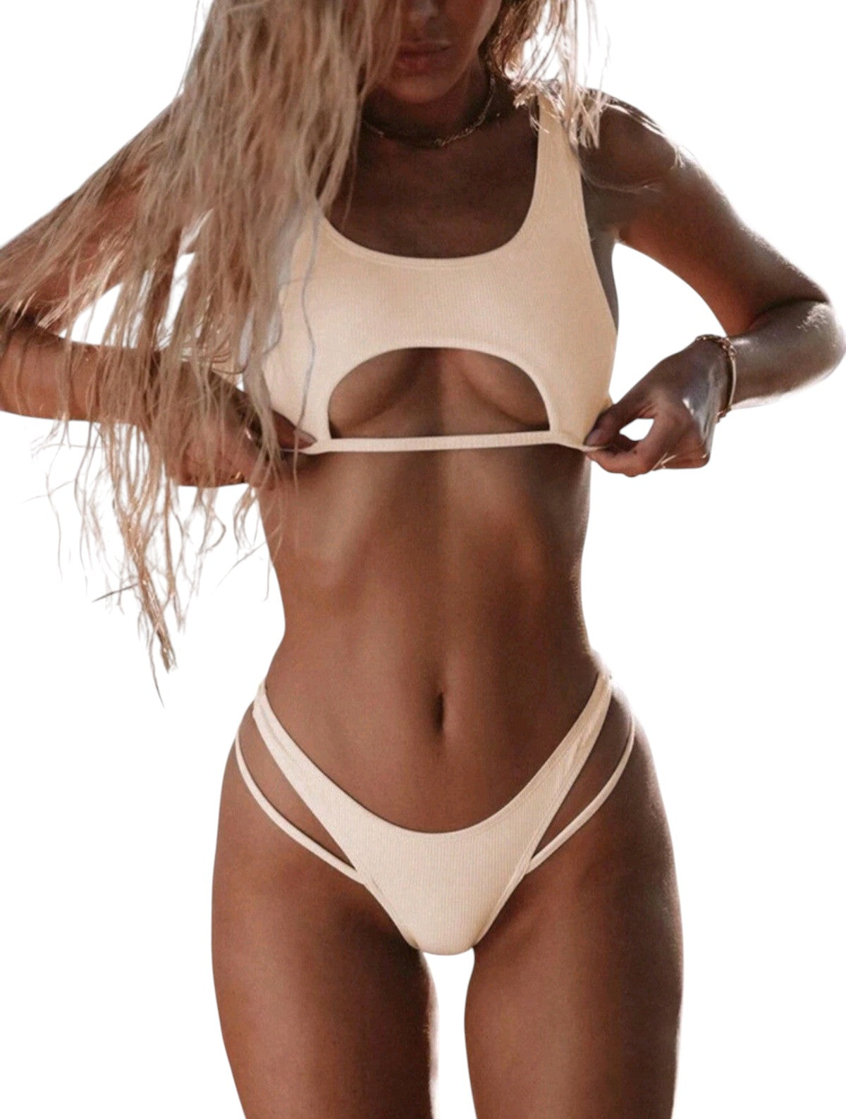 SHE bézs bordázott kivágott bikini