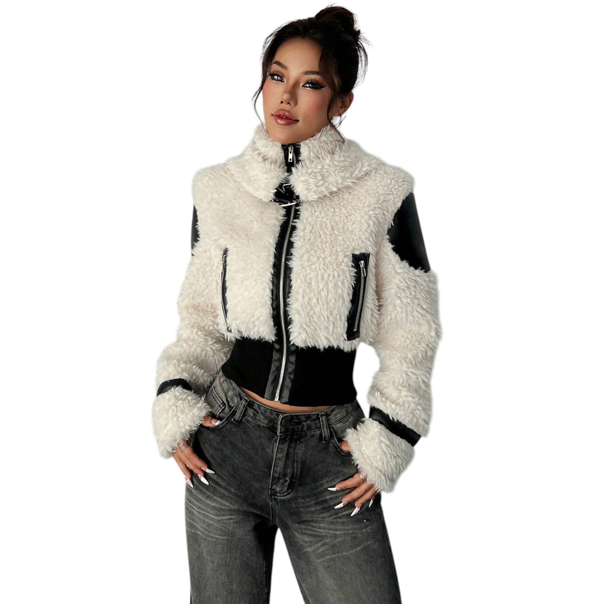 SHE fehér műszőrme rövid kabát