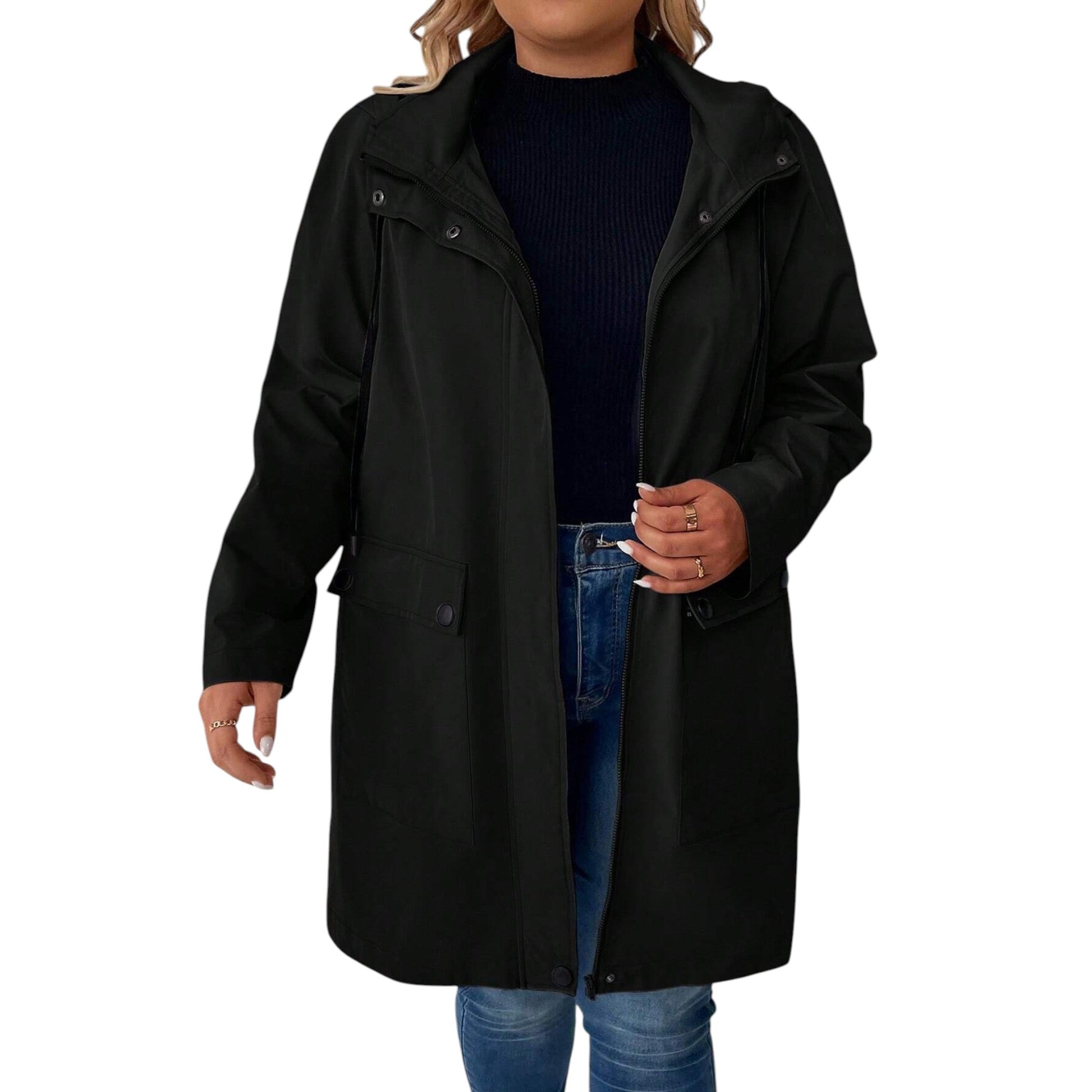 Címke nélküli, fekete, hosszú ujjú, kapucnis, zsebes, cipzáras dzseki.