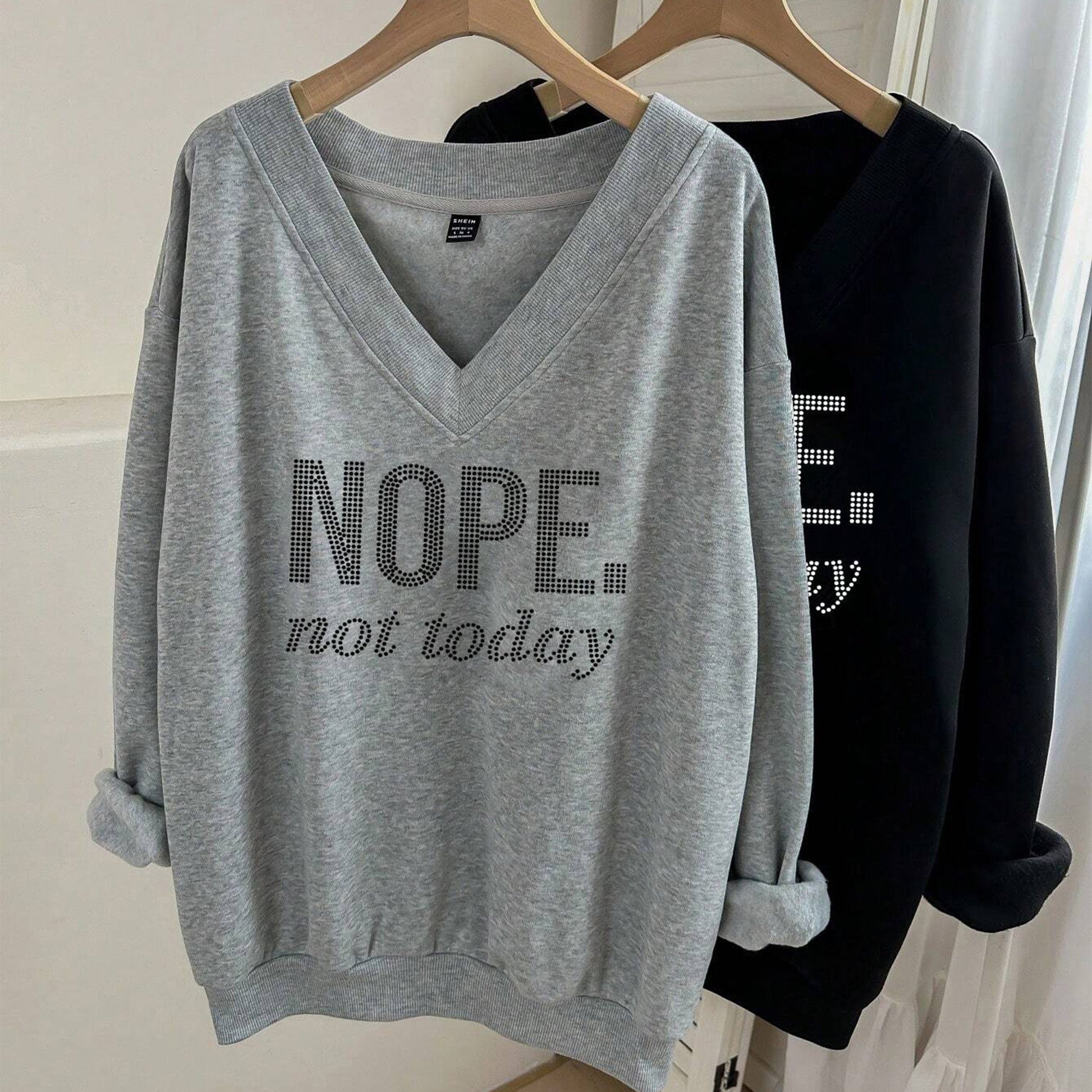Címke nélküli, fekete, V-nyakú, hosszú ujjú, feliratos pulóver. (az árba csak a fekete szín tarozik bele)