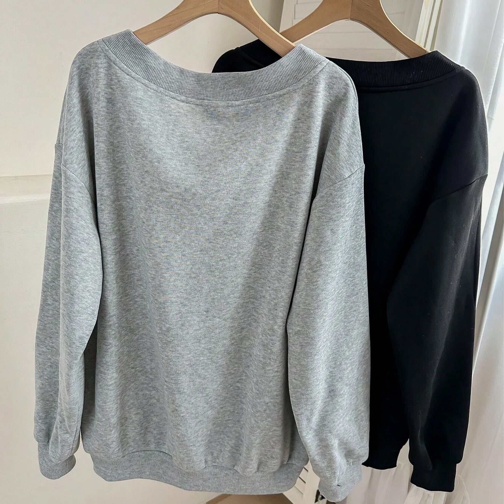 Címke nélküli, szürke, V-nyakú, hosszú ujjú, feliratos pulóver. (az árba csak a szürke szín tarozik bele)