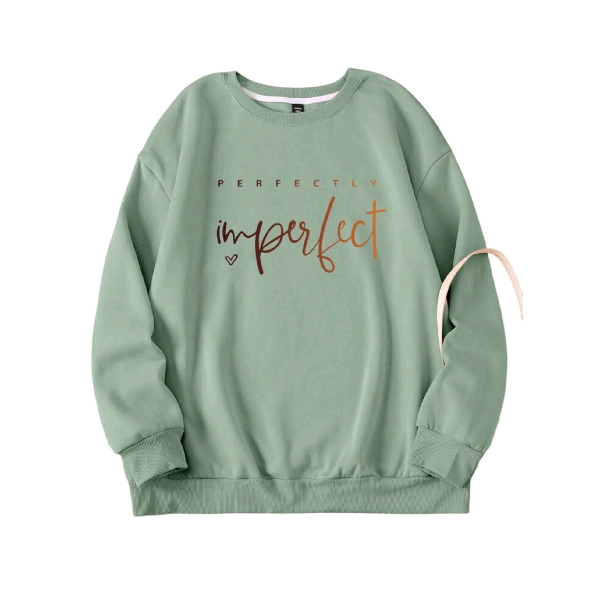 SHE világoszöld "Perfectly Imperfect" feliratos pulóver