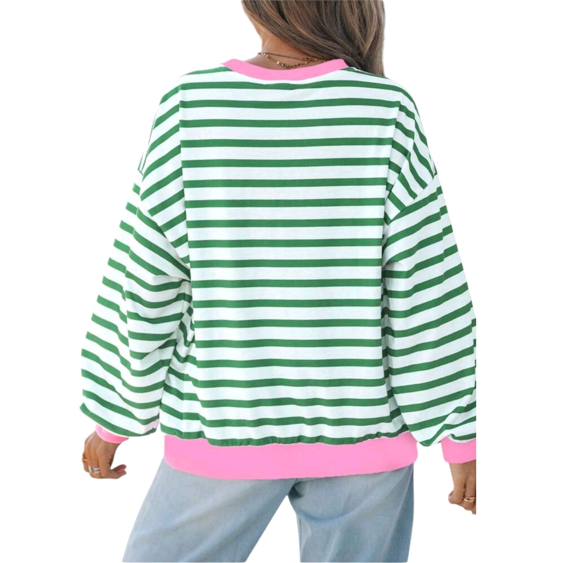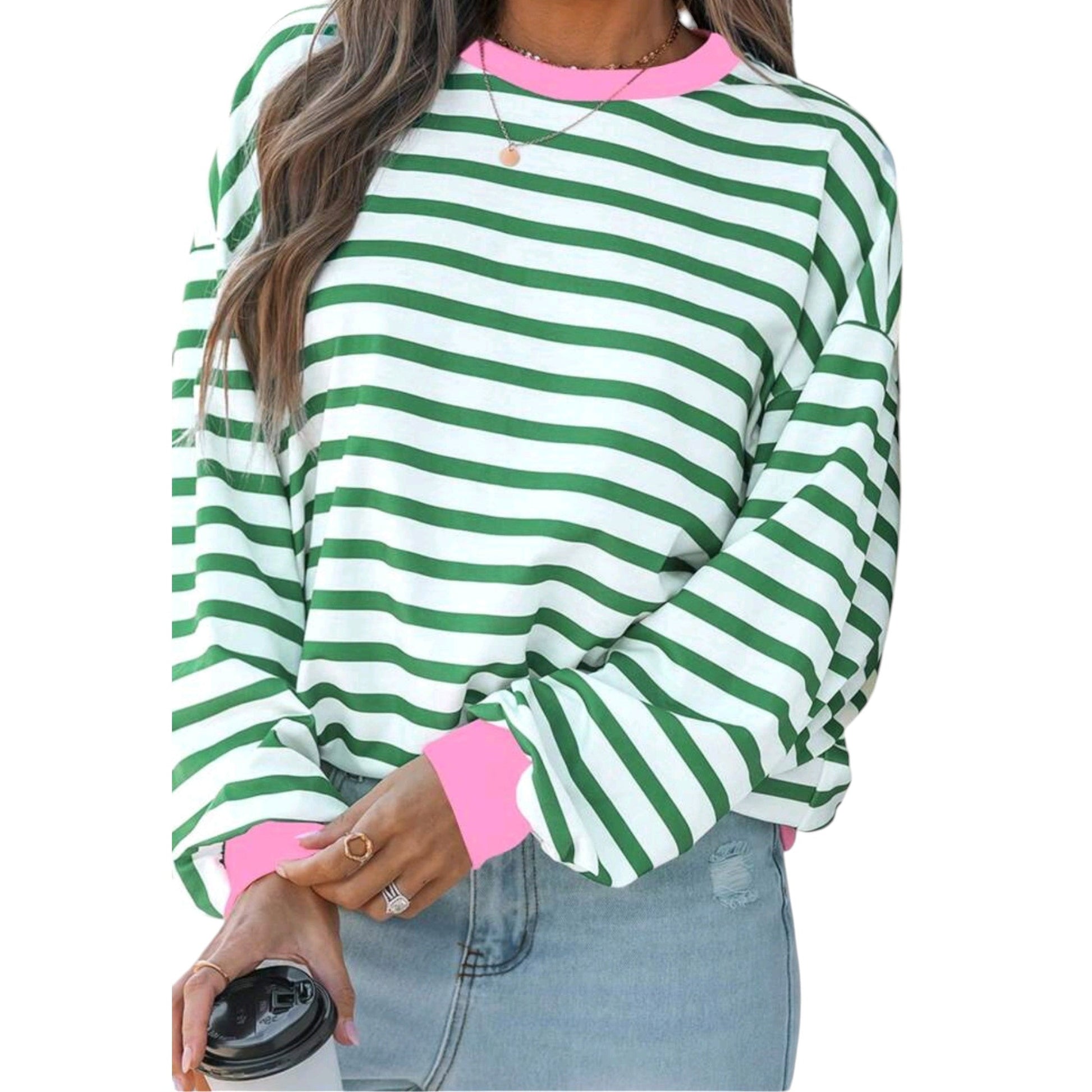 SHE zöld-fehér csíkos hosszú ujjú póló