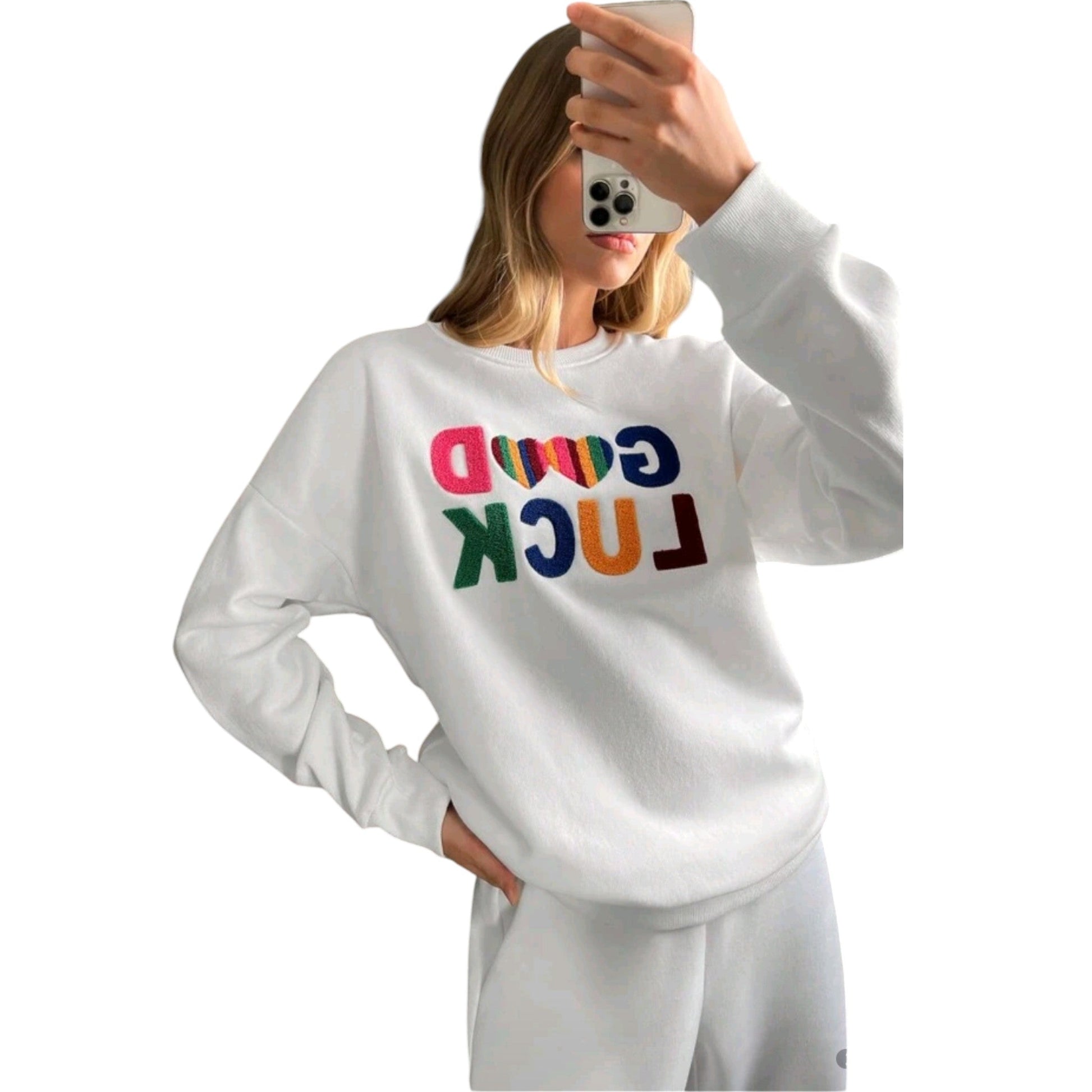 SHE fehér feliratos pulóver
