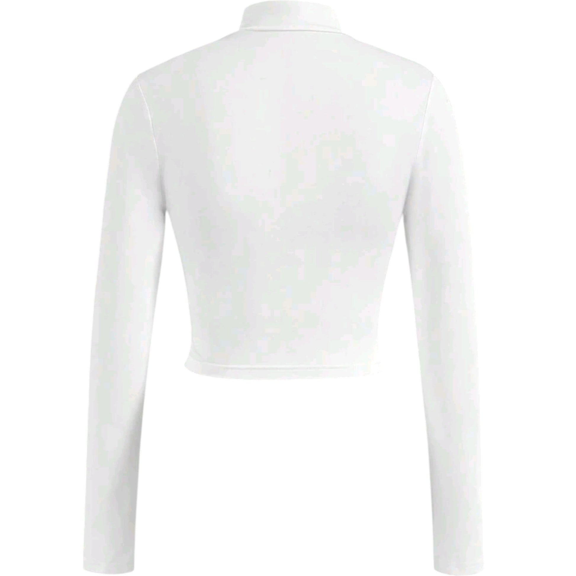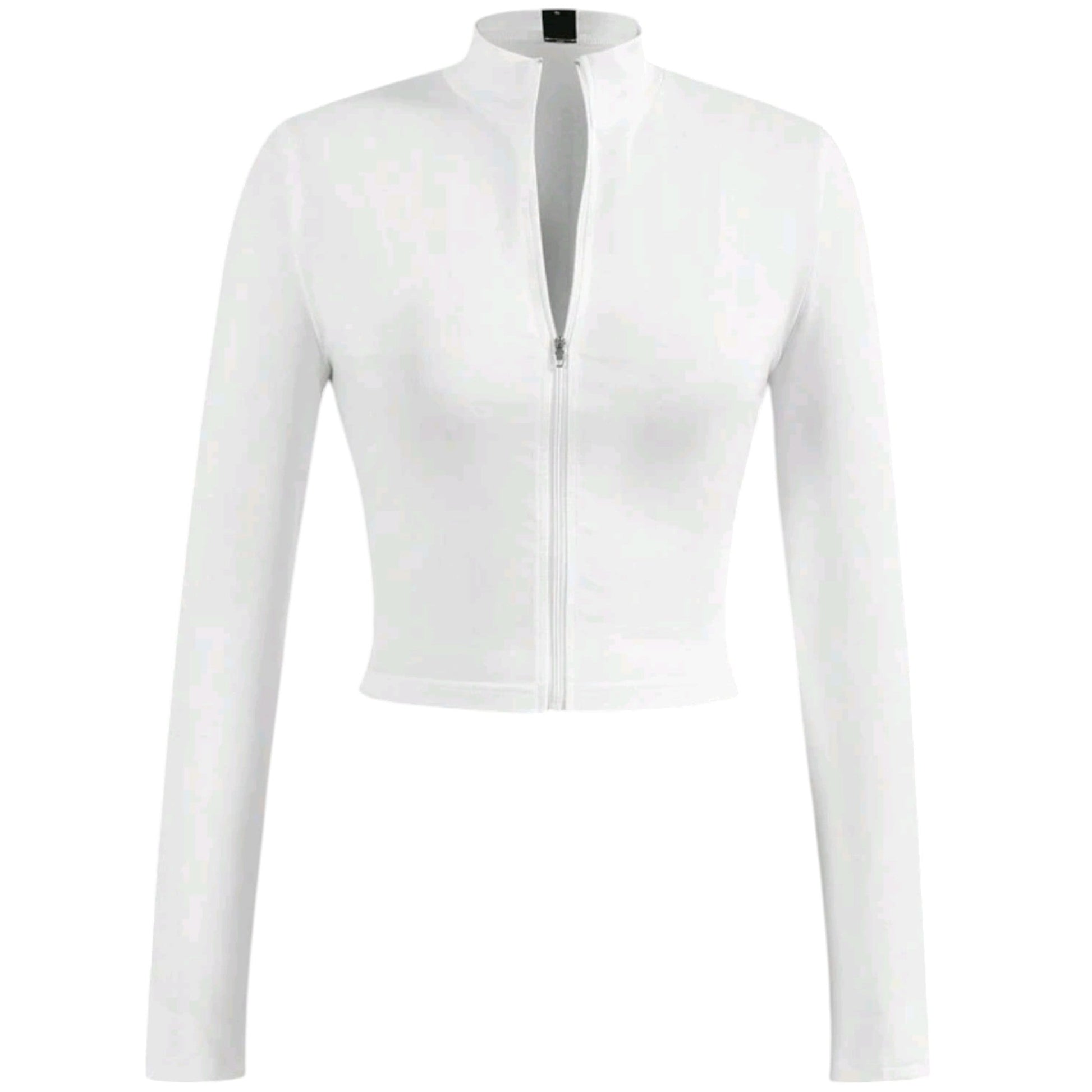 Címke nélküli, fehér, hosszú ujjú, cipzáras, crop top, bordázott anyag.