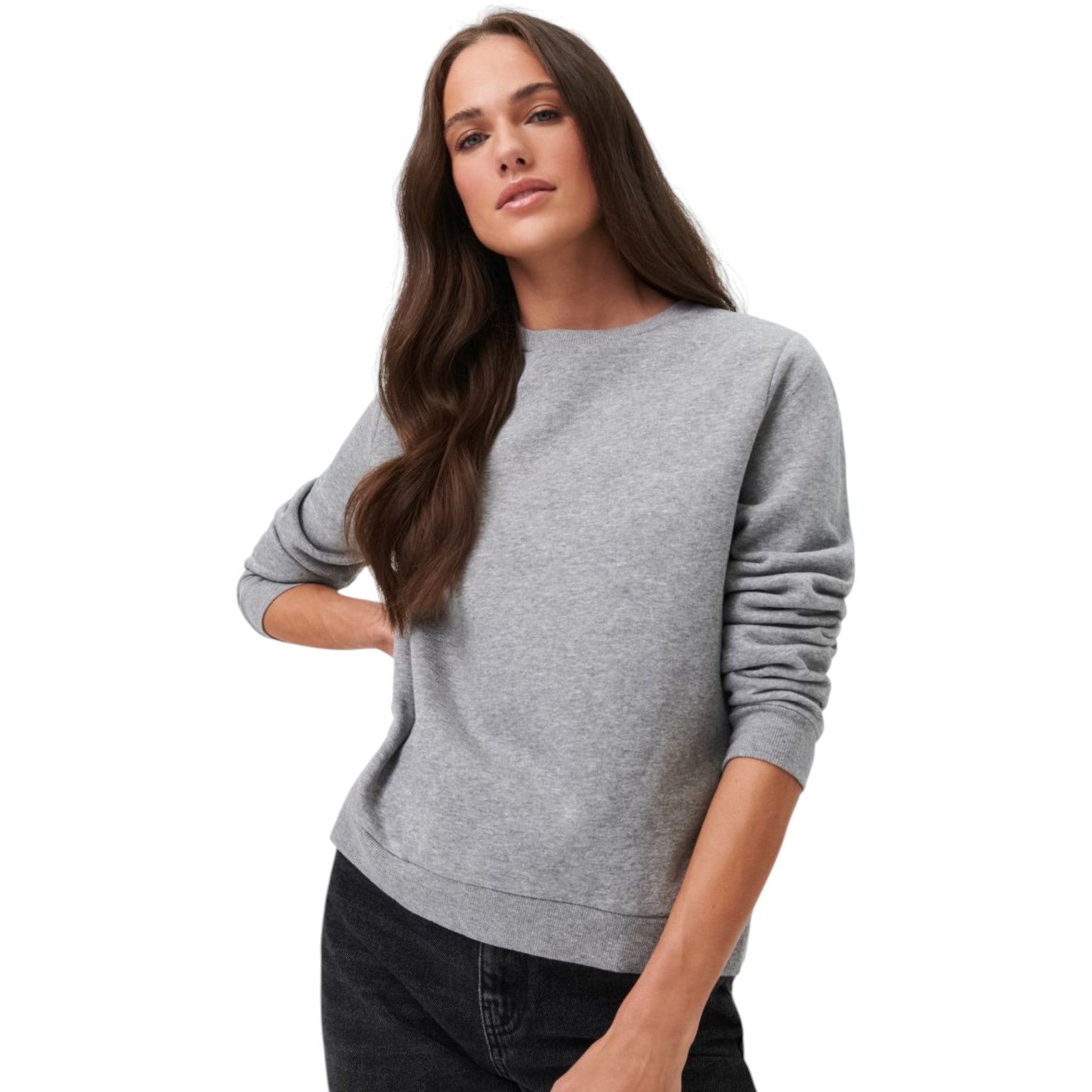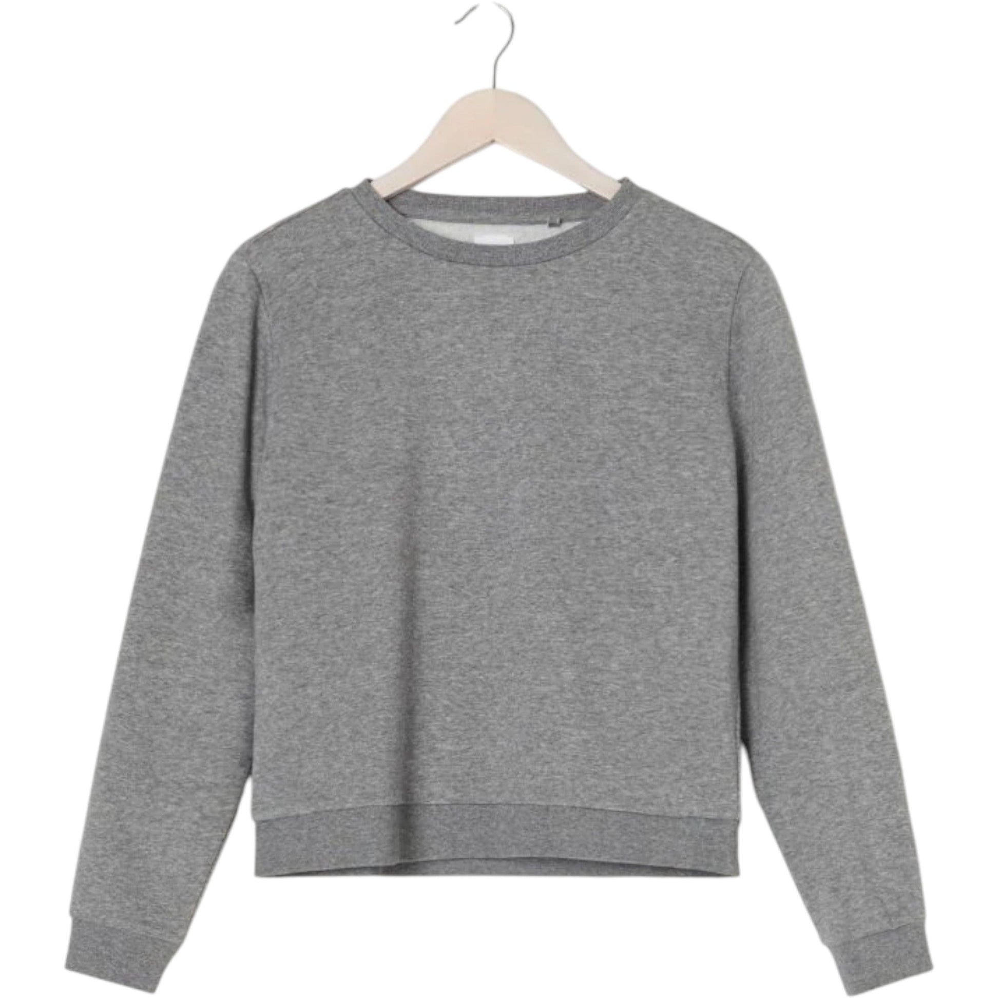 Címke nélküli, szürke, hosszú ujjú, kerek nyakú, standard hosszúságú, passzés nyak, ujj és alj.
