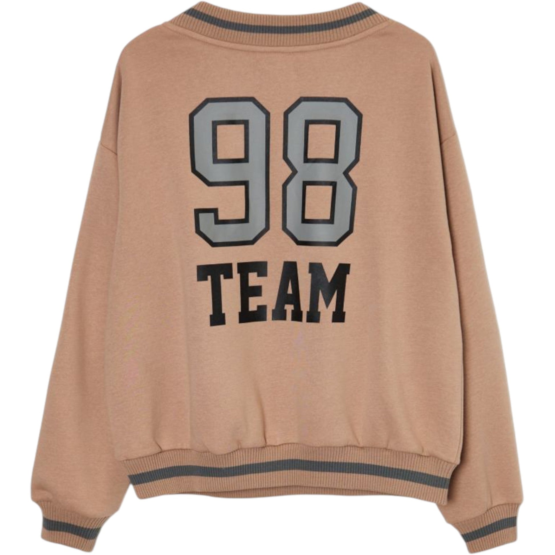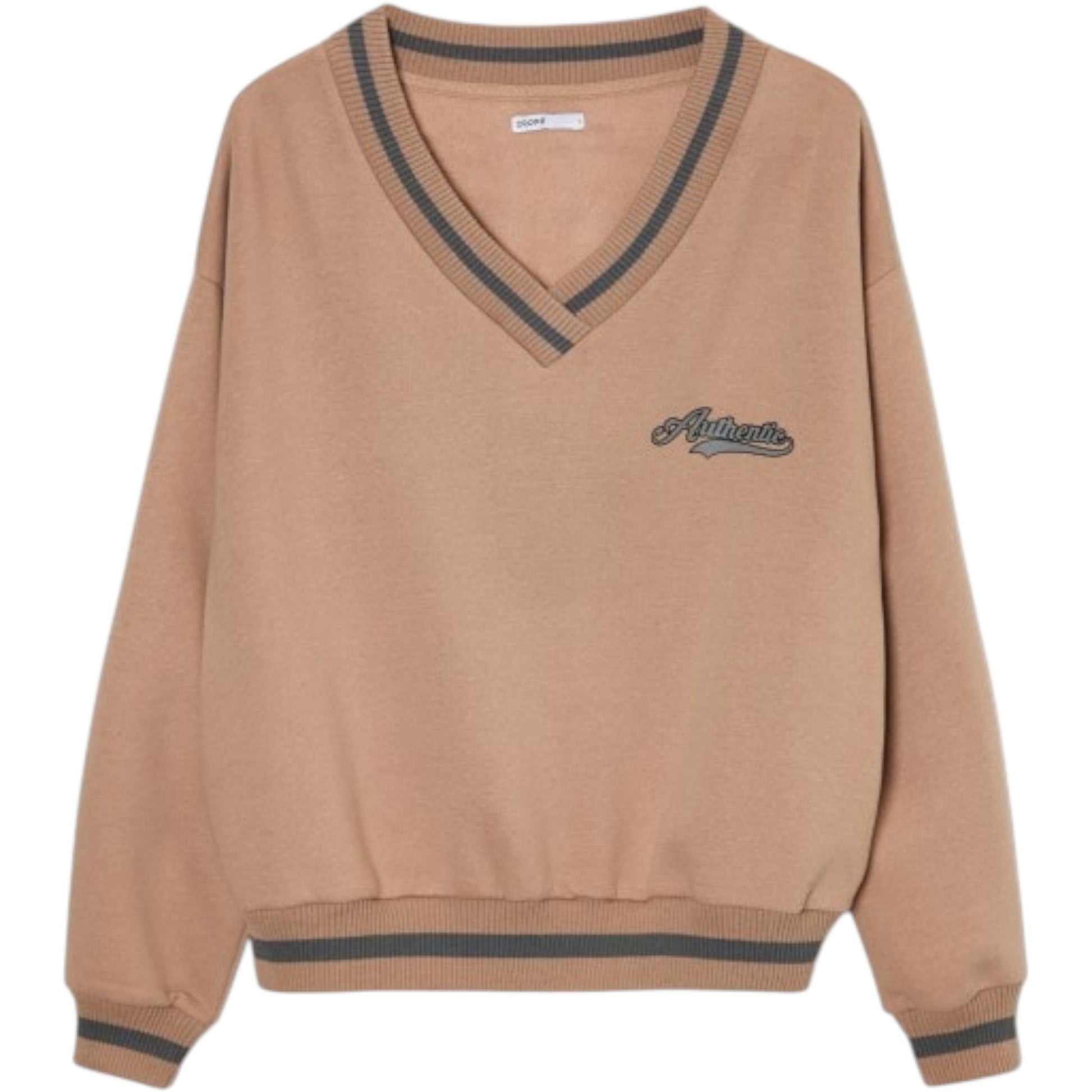 Címke nélküli, barna, hosszú ujjú, V-nyakú, bő szabású, passzés, szürke csíkos nyak, alj és mandzsetta, mellkasán "Authentic" hímzéssel.