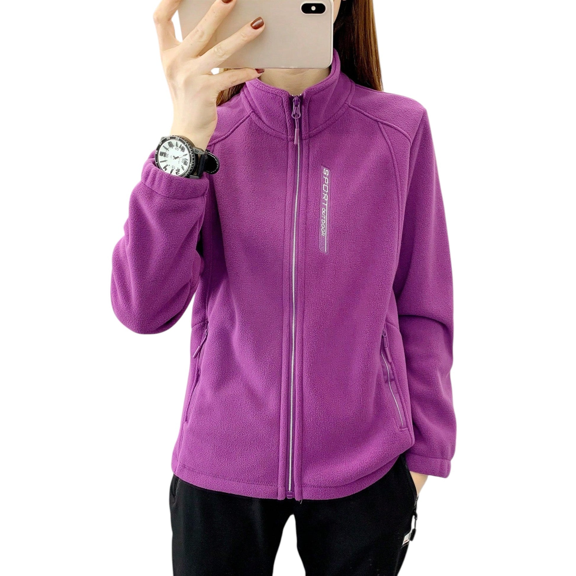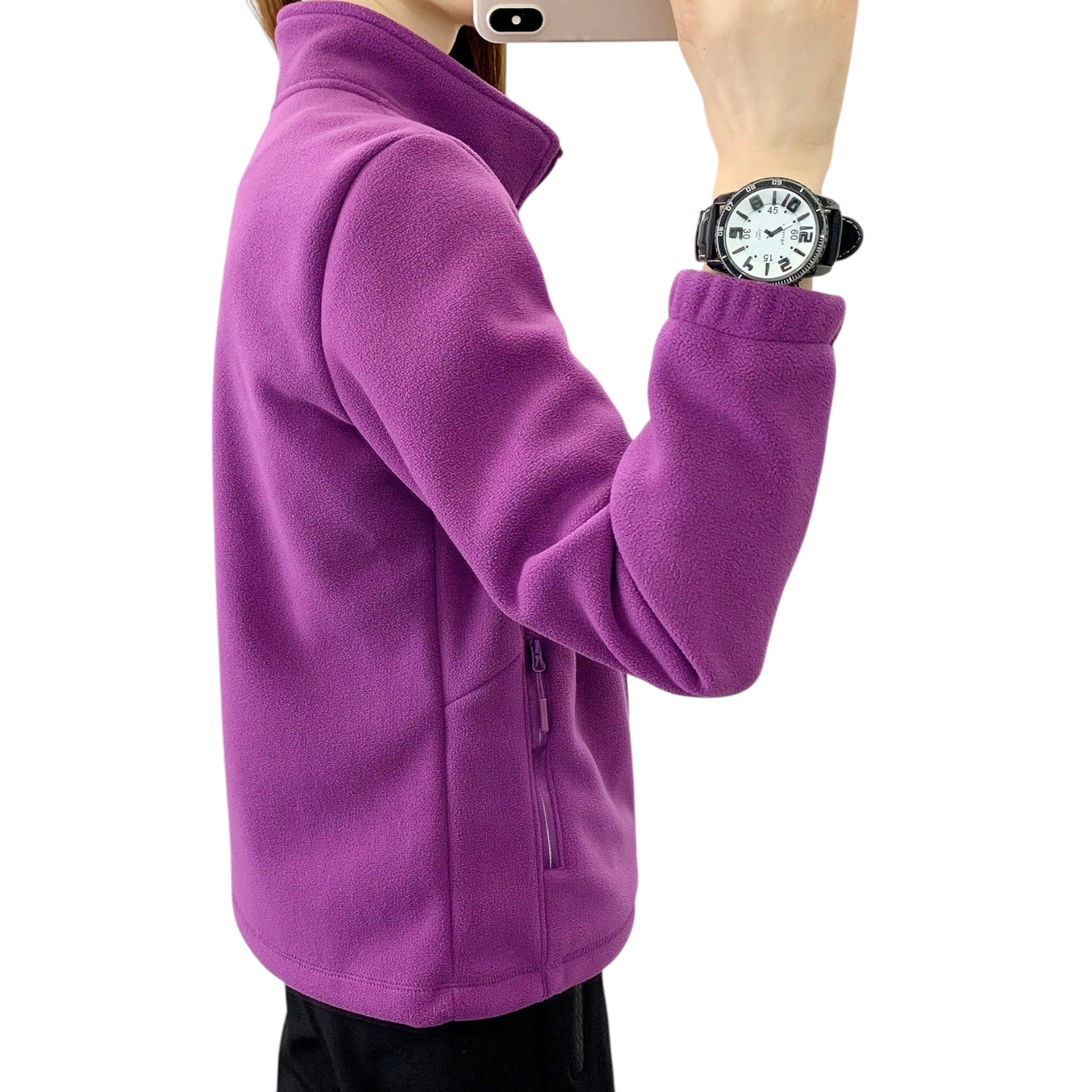 Címke nélküli, lila, polár dzseki, álló gallérral, cipzáros záródású, hosszú ujjú, elöl cipzáros zsebekkel.
