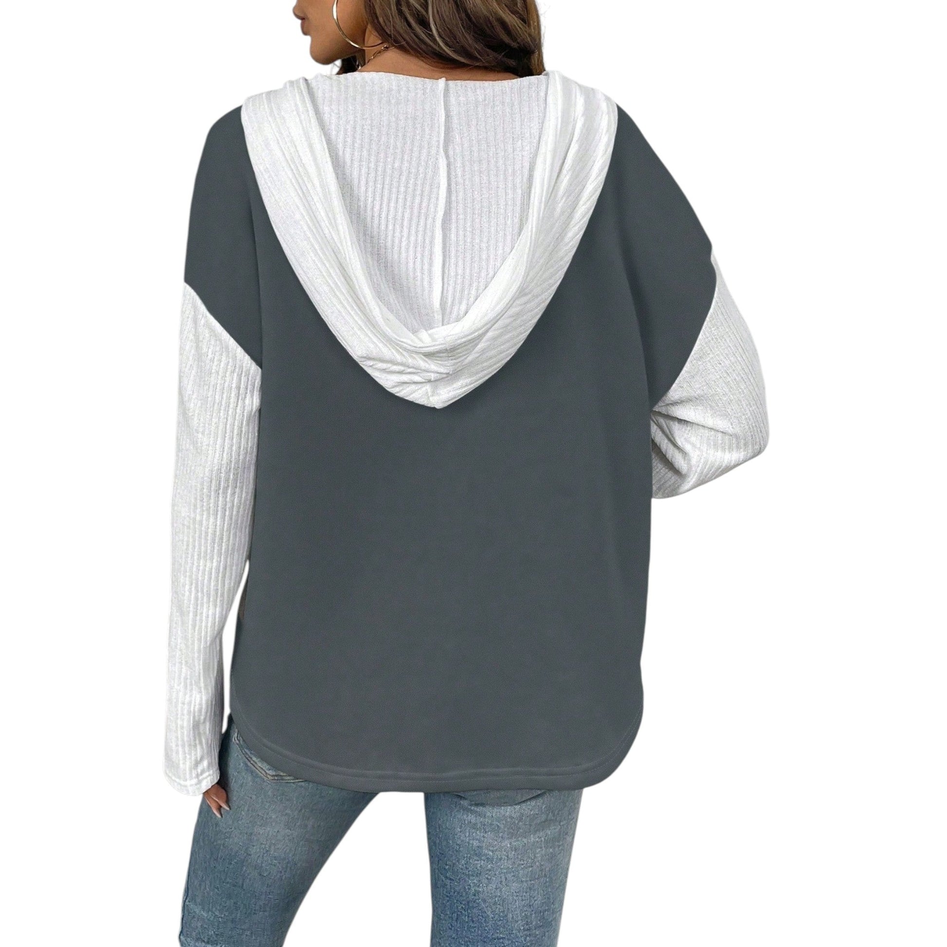SHE szürke és fehér kontraszt színű kapucnis pulóver