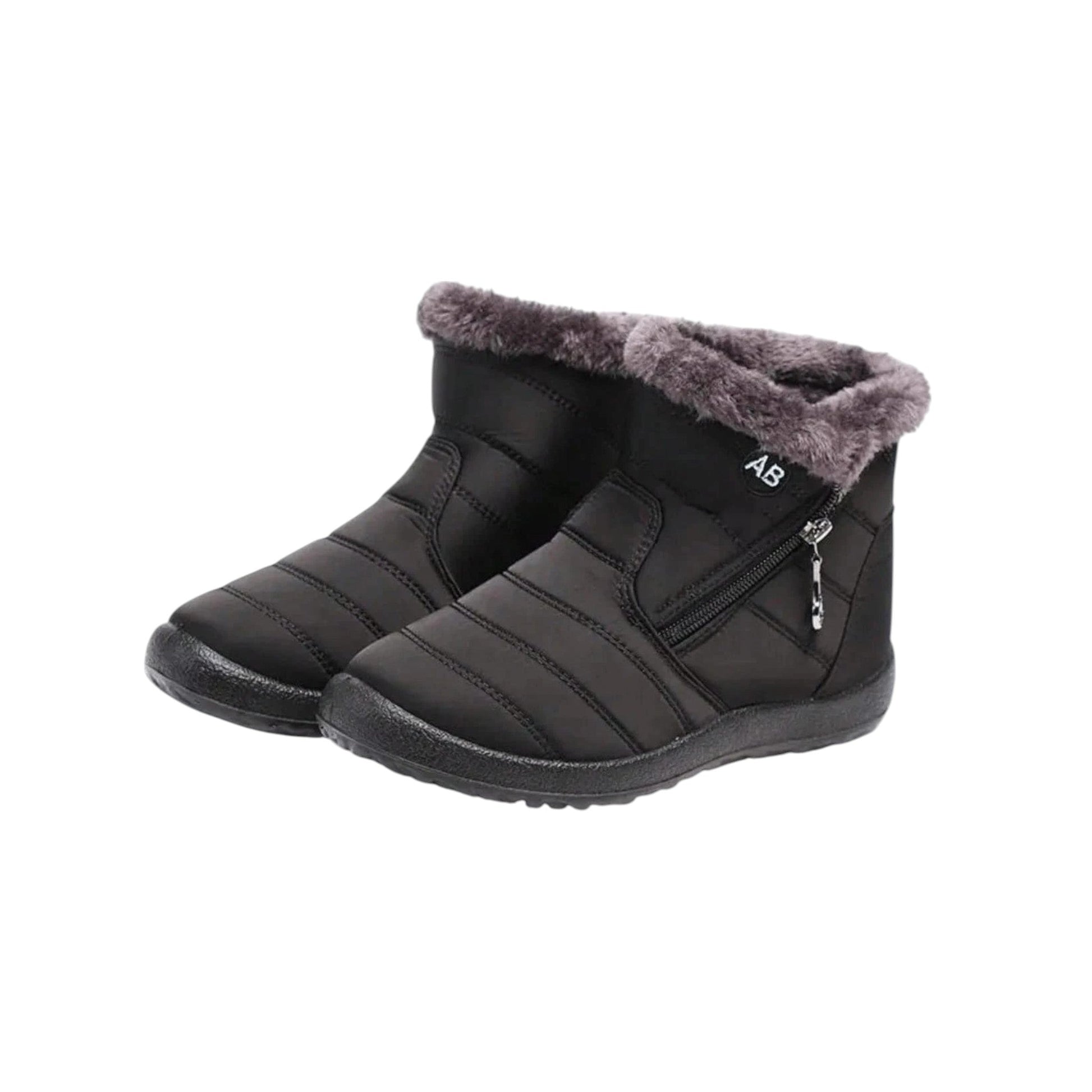 Címke nélküli, fekete, vízálló, párnázott téli bokacsizma cipzárral és szőrmés béléssel. Belső talp hossz: 23cm