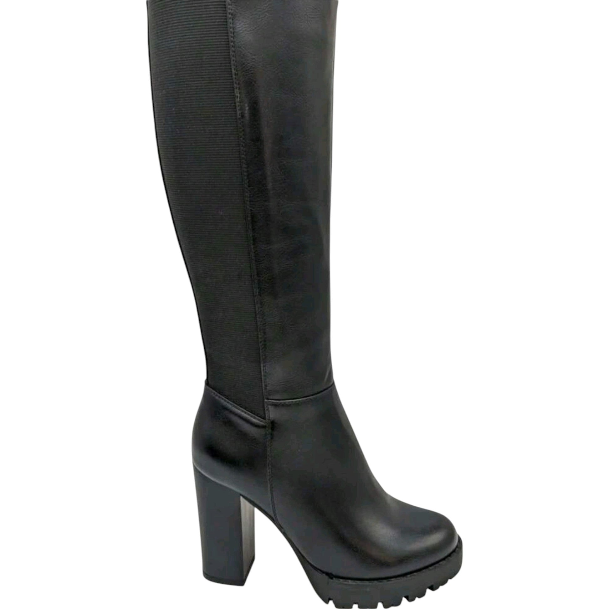 Címke nélküli, fekete, vastag sarokkal, platform talppal, rugalmas betéttel a száron.