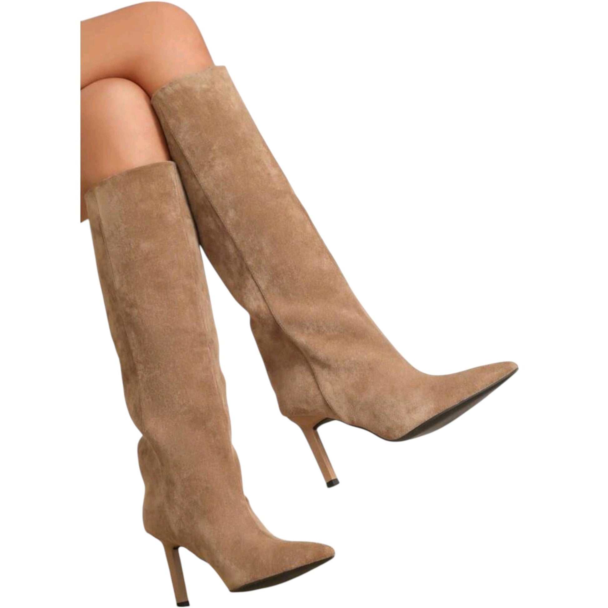 Címke nélküli, barna, velúr, hegyes orrú, magassarkú. Belső talp hossz: 23,5cm