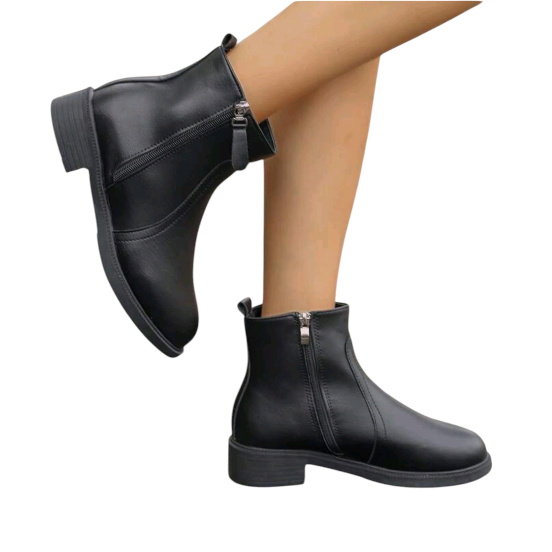 Címke nélküli, fekete, dupla cipzáras, lapos talpú bokacsizma. Belső talp hossz: 24cm