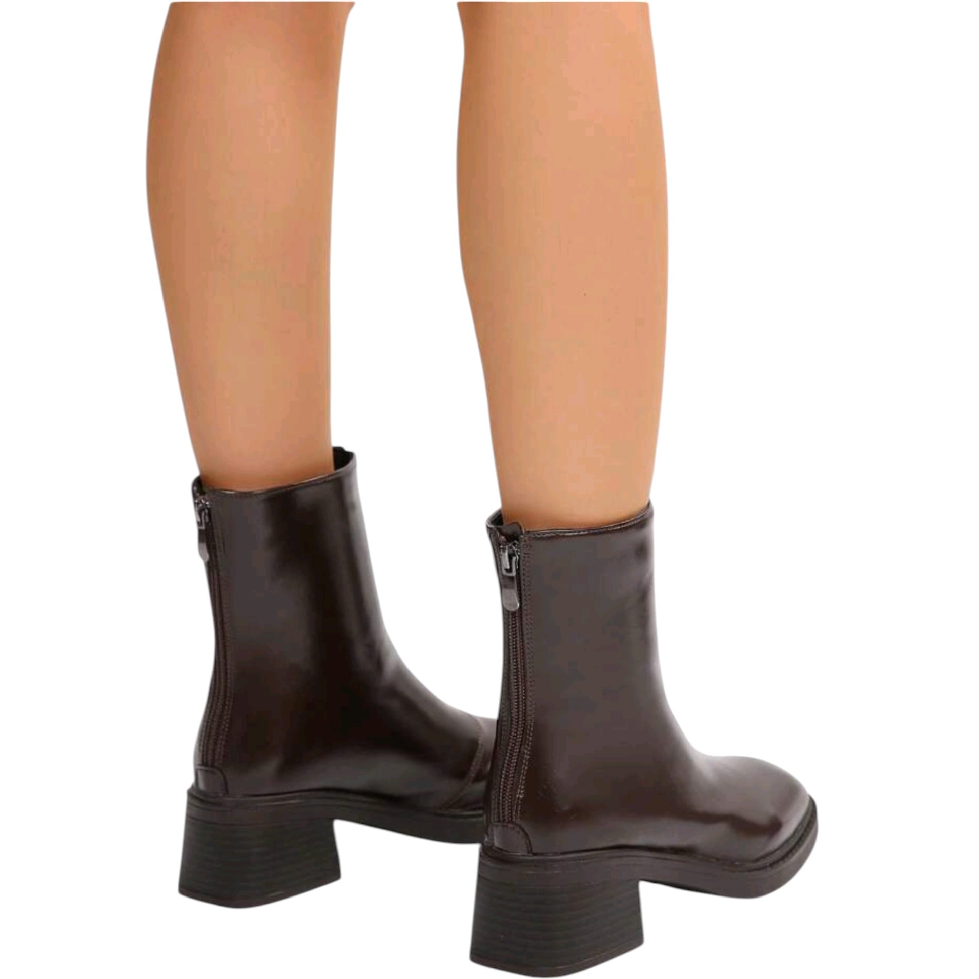 Címke nélküli, barna, műbőr/bőr hatású, vastag sarkú, cipzáros. Belső talp hossz: 22cm