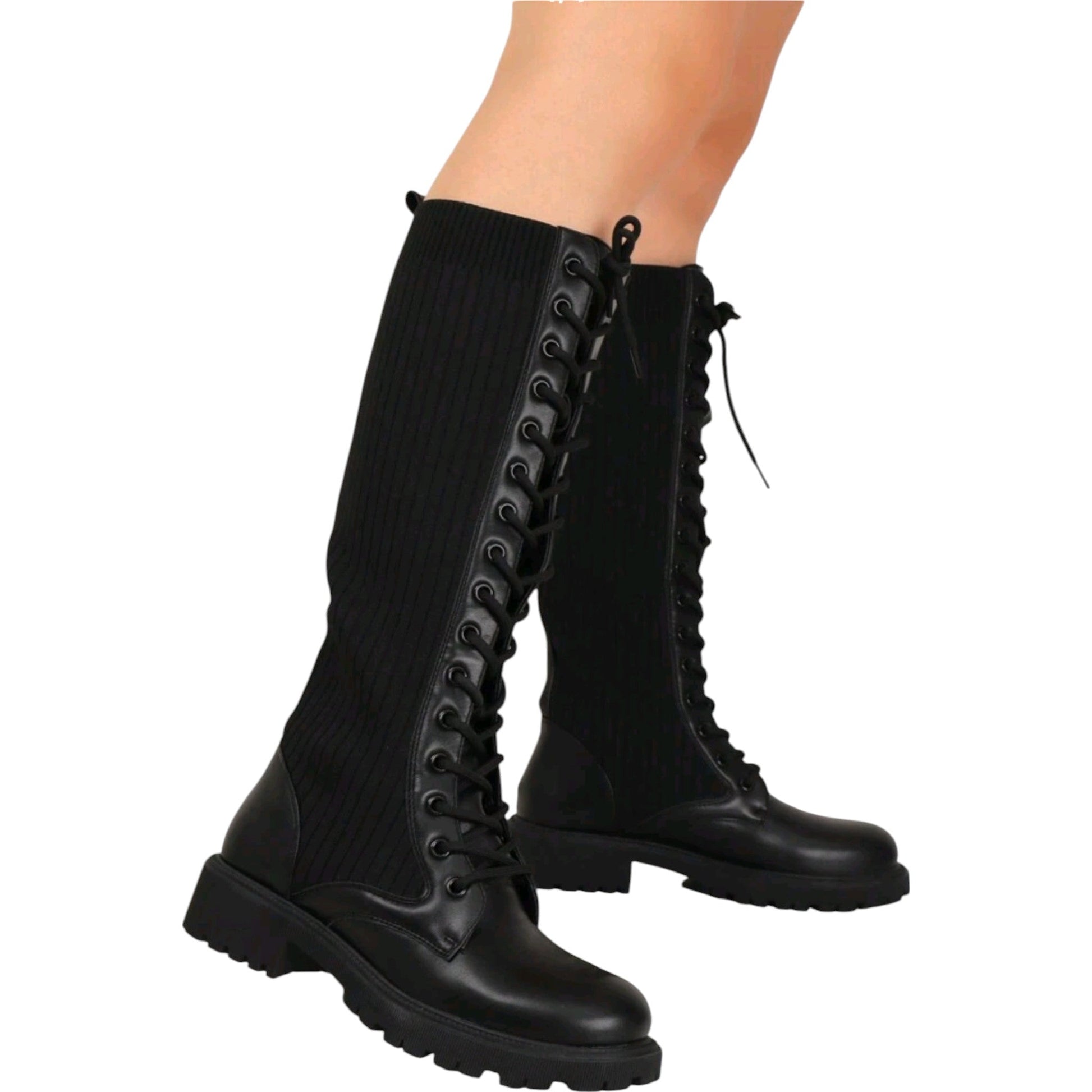 SHE fekete kötött szárú bakancs