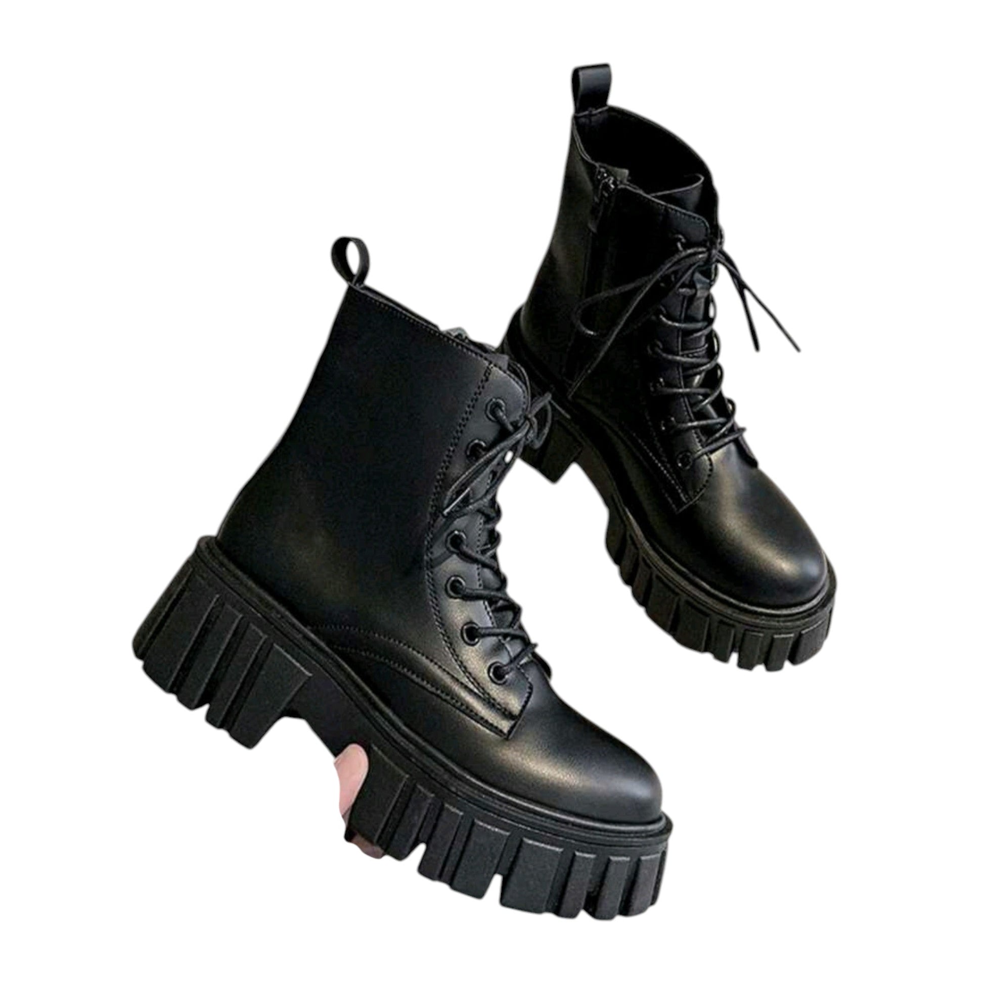 Címke nélküli, fekete, fűzős, cipzáras, chunky talpú bakancs. Belső talp hossz: 26cm
