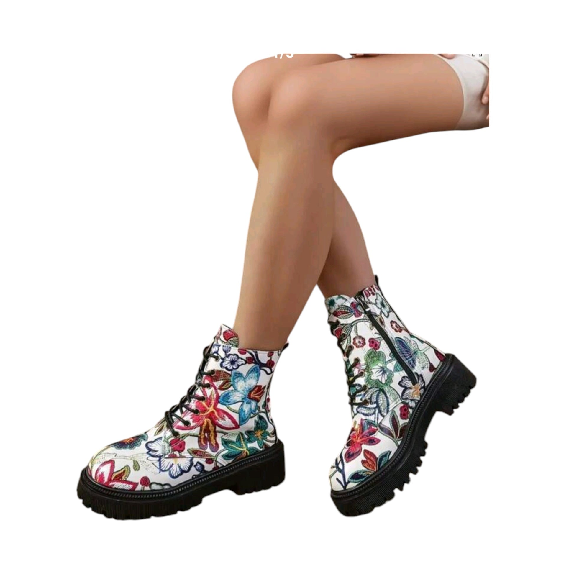 SHE többszínű virágmintás bakancs