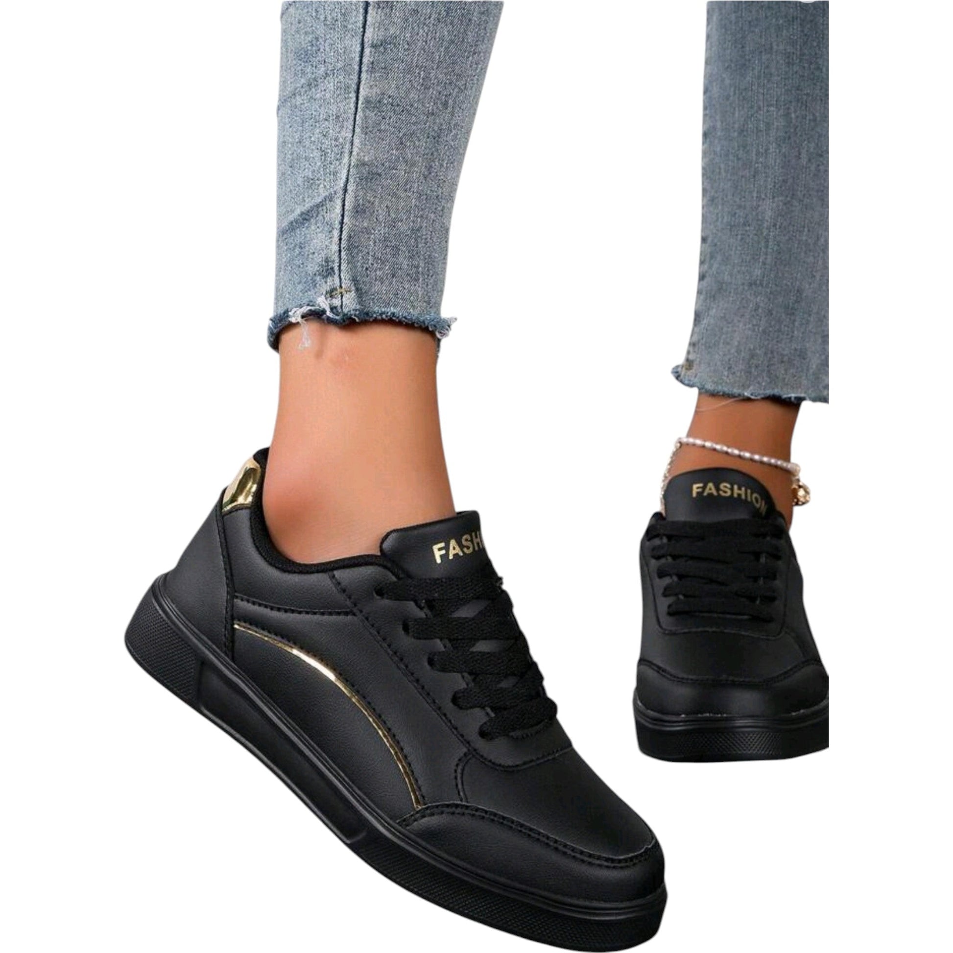 Címke nélküli, fekete, arany díszítésű, fűzős, lapos talpú.