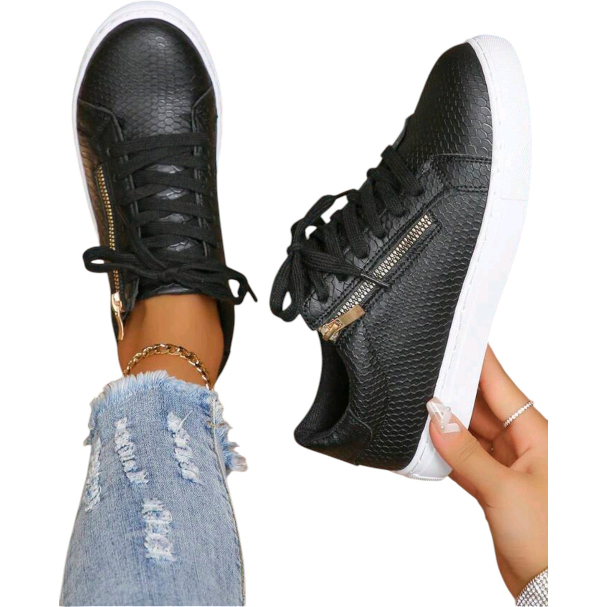 Címke nélküli, fekete, cipzáros, fűzős, kígyóbőr mintás.