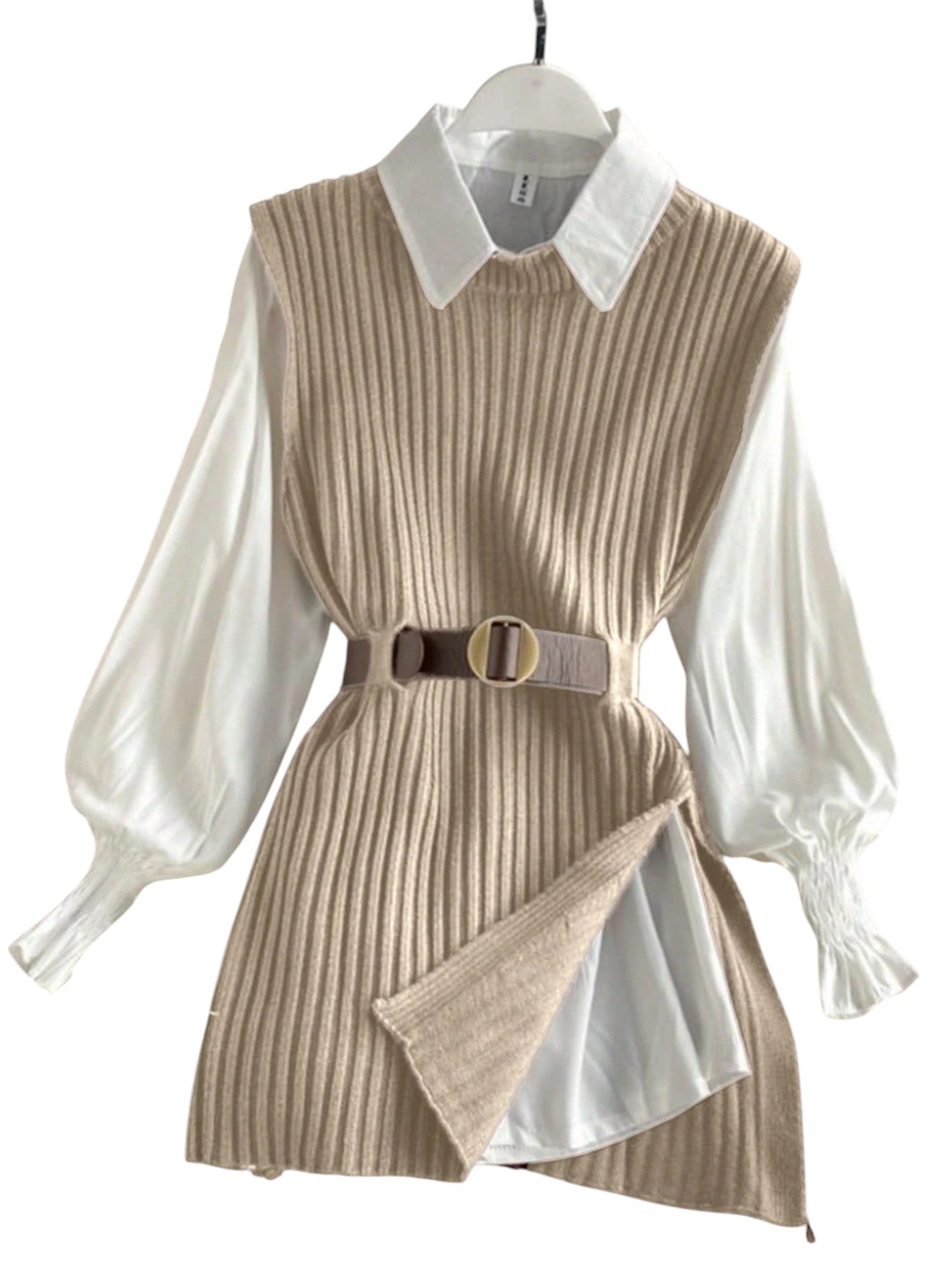 Címke nélküli, bézs, V-nyakú, ujjatlan kötött mellény