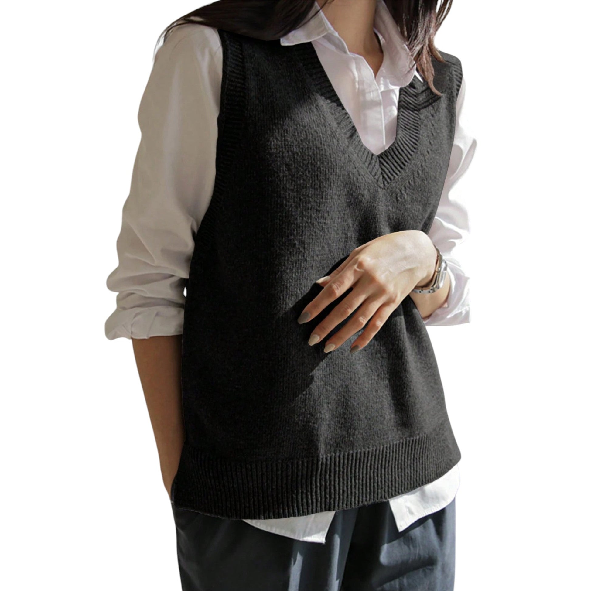 Címke nélküli, fekete, V-nyakú kötött mellény. Ujjatlan, bordázott passzéval az alján és a nyakkivágásnál.