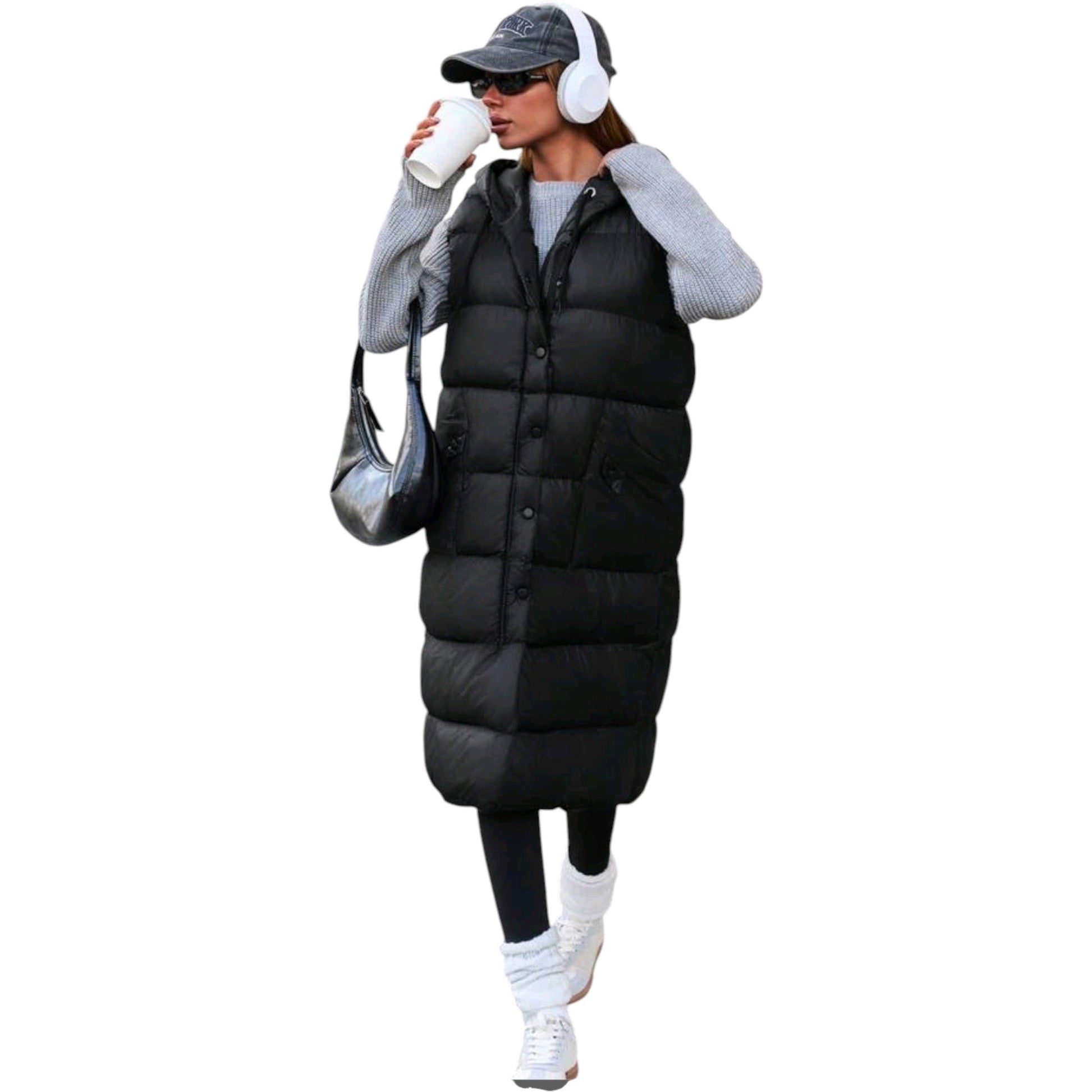 SHE fekete hosszú kapucnis mellény