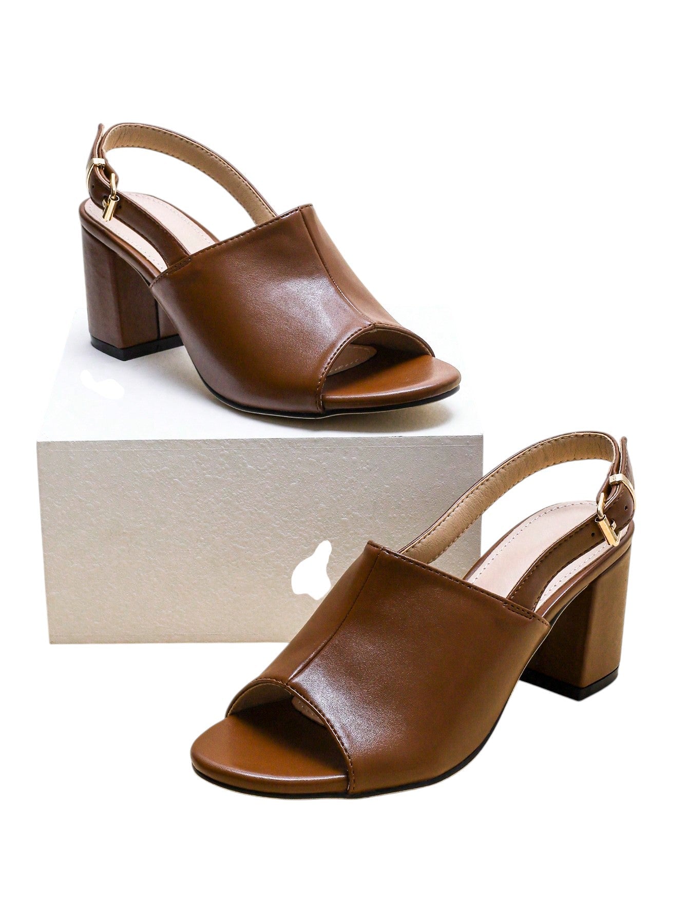 Címke nélküli, barna, nyitott orrú, vastag sarkú, bokapántos szandál arany színű csattal. Belső talp hossz: 26,6cm