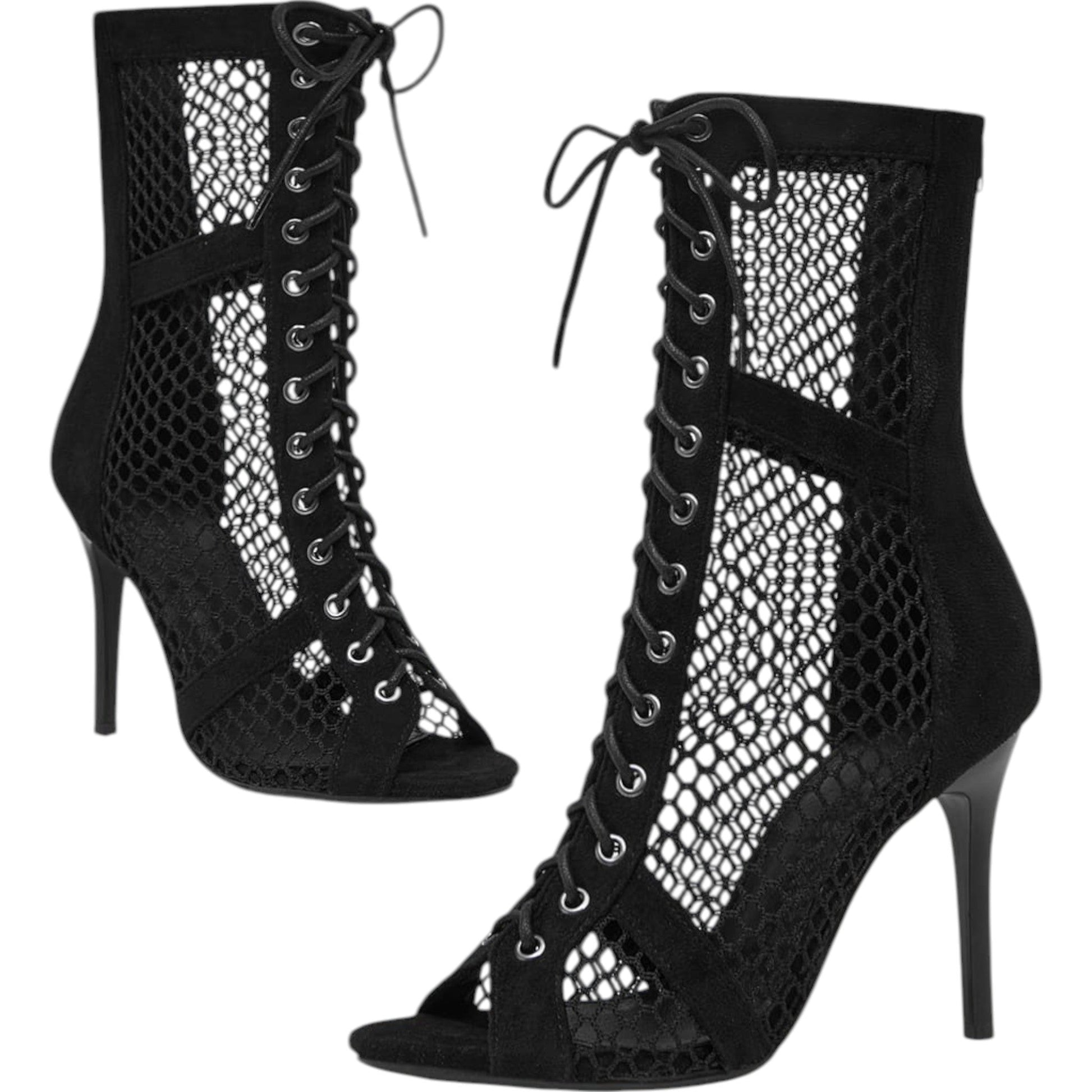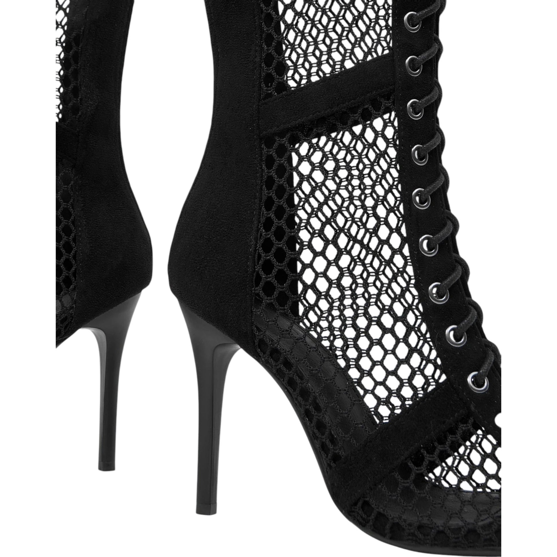 SHE fekete hálós fűzős bokacsizma