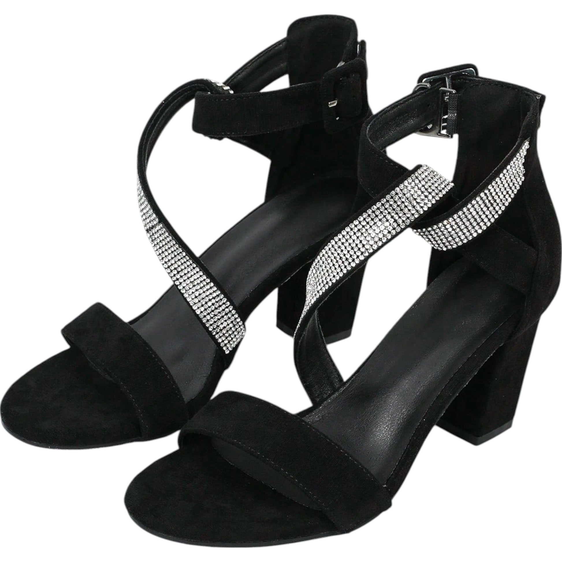 Címke nélküli, fekete, kövekkel díszített, platform talpú, magas sarkú, bokapántos. Belső talp hossz: 25,5cm