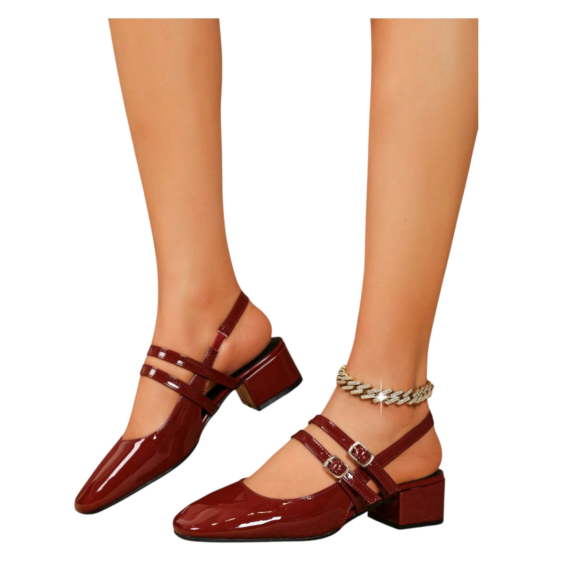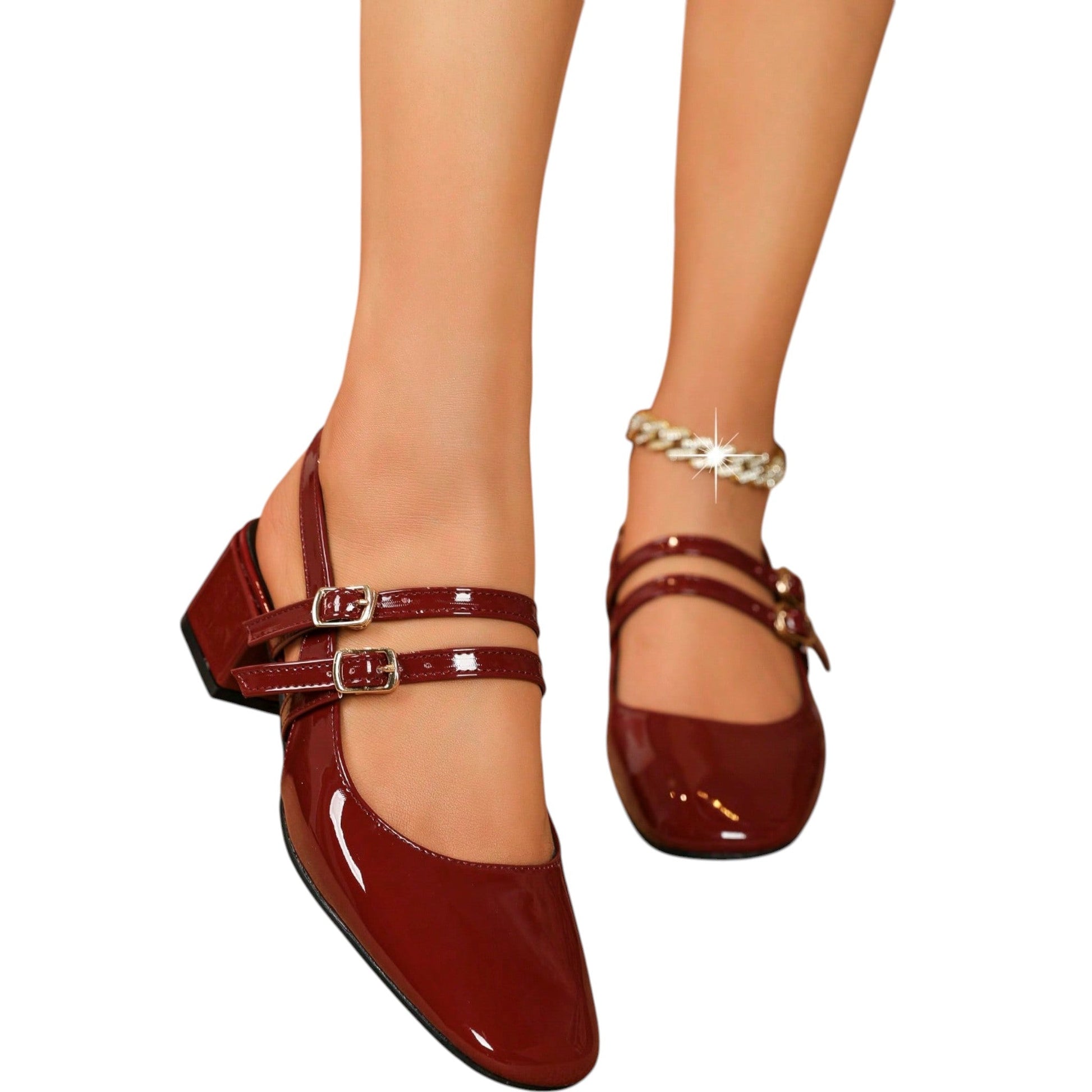 Címke nélküli, piros, lakk hatású, dupla csatos mary jane lapos talpú cipő. Belső talp hossz: 24,5cm