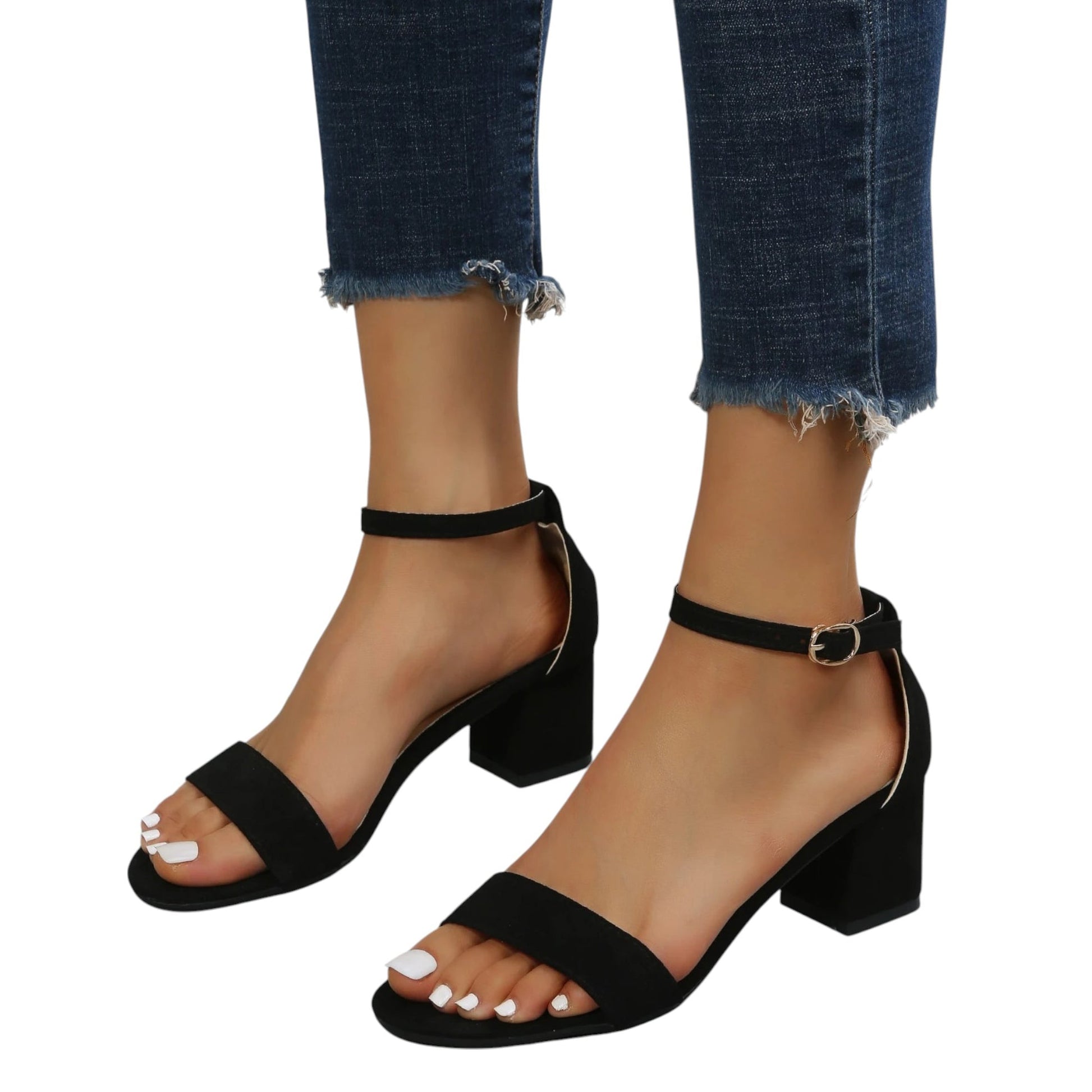 Címke nélküli, fekete, boka pánttal, nyitott orrú, blokk sarokkal. Belső talp hossz: 21,5cm