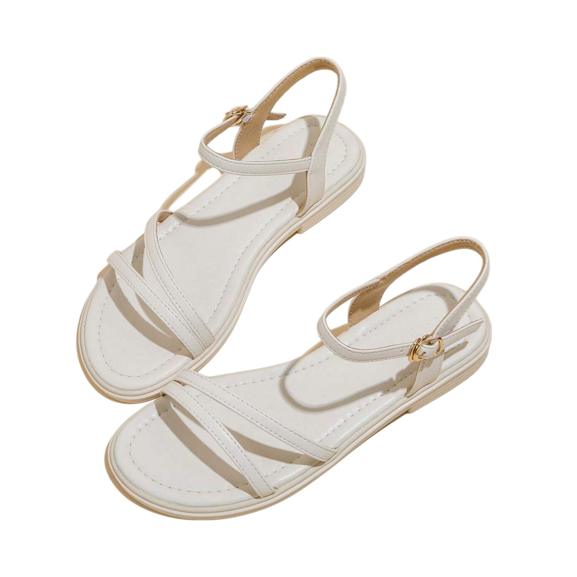 Címke nélküli, fehér színű, vékony pántokkal, bokapánttal és csattal, lapos talpú.
