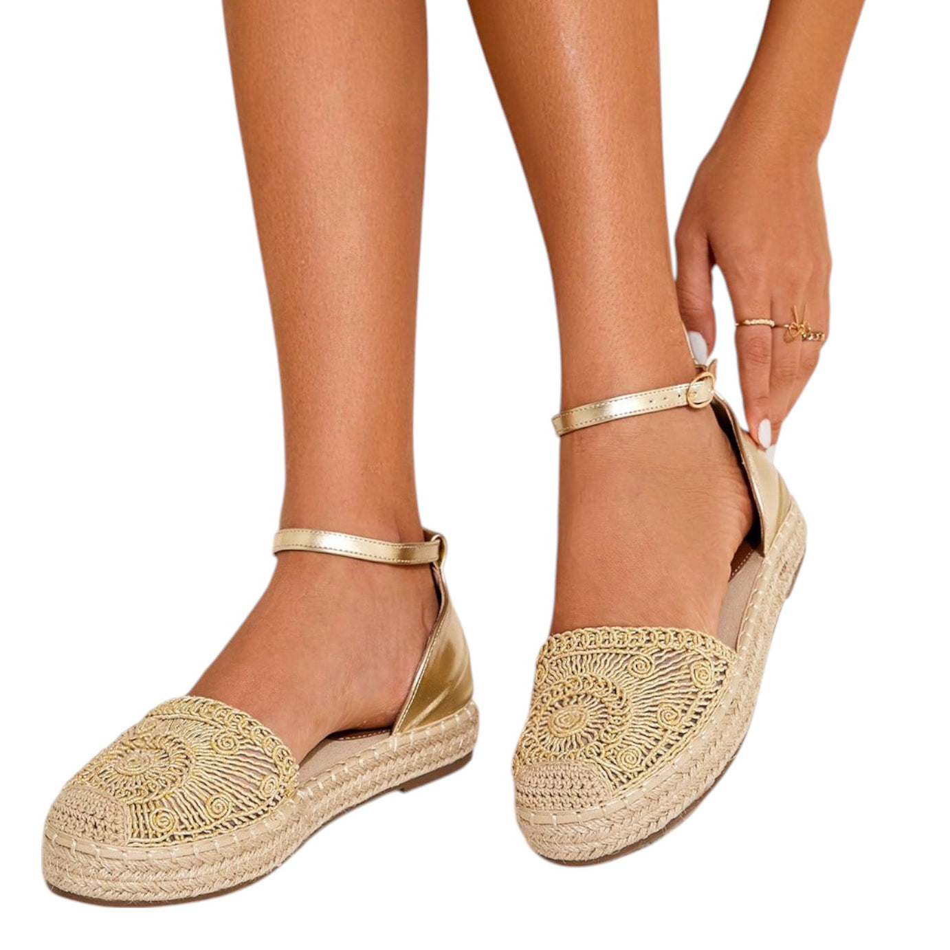Címke nélküli, arany színű, horgolt orrú és éktalpú, bokapánttal és csattal.