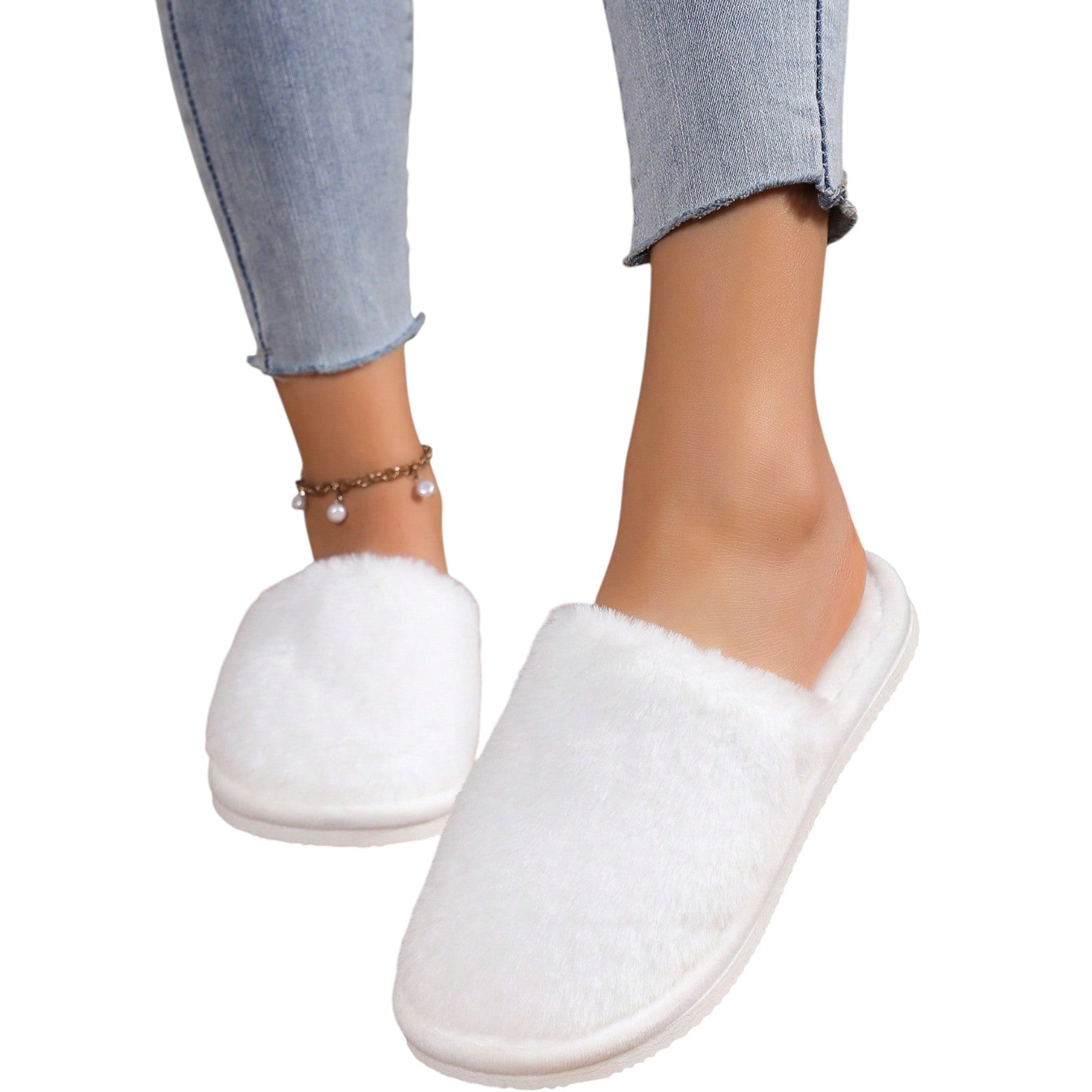 Címke nélküli, fehér, bebújós, vastag, bolyhos műszőrme pánt, lapos talpú.