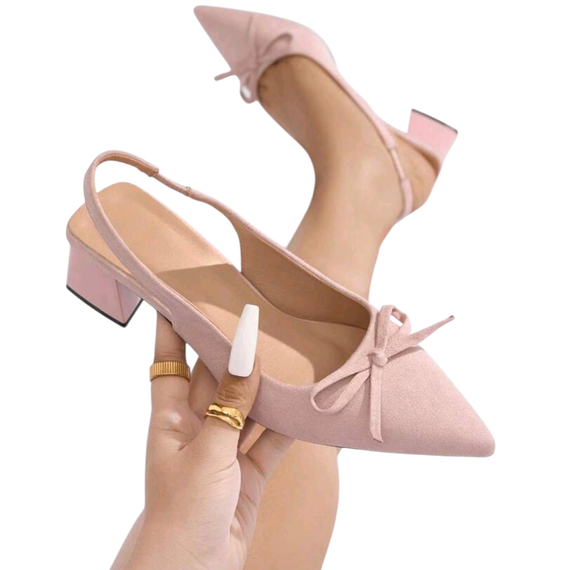 SHE rózsaszín masnis slingback alacsony sarkú cipő