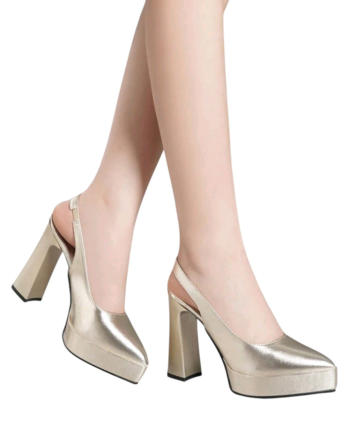 Címke nélküli, arany, műbőr, platformos heeled slingbacks, vastag sarokkal. Belső talp hossz: 26cm