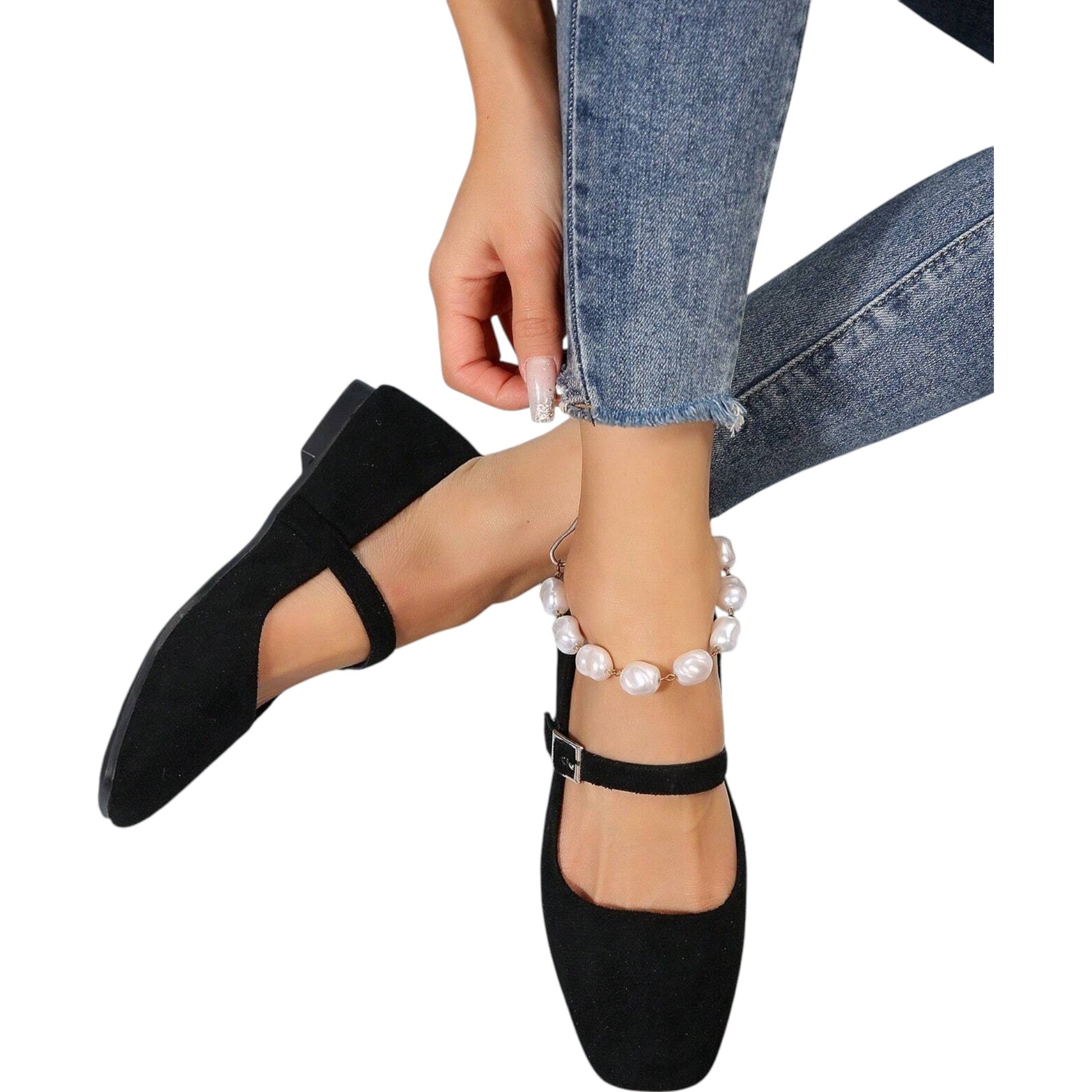 Címke nélküli, fekete, velúr hatású, szögletes orrú, csatos pánttal Belső talp hossz: 26cm