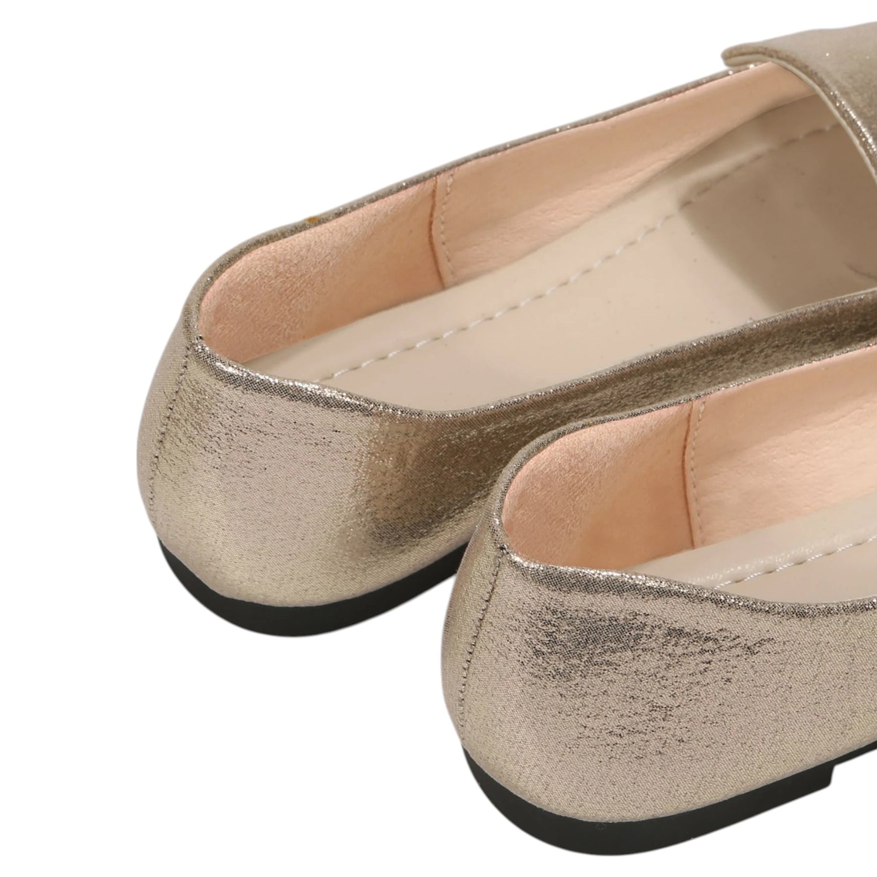 Címke nélküli, arany színű, hegyes orrú, bebújós cipő. Belső talp hossz: 25cm