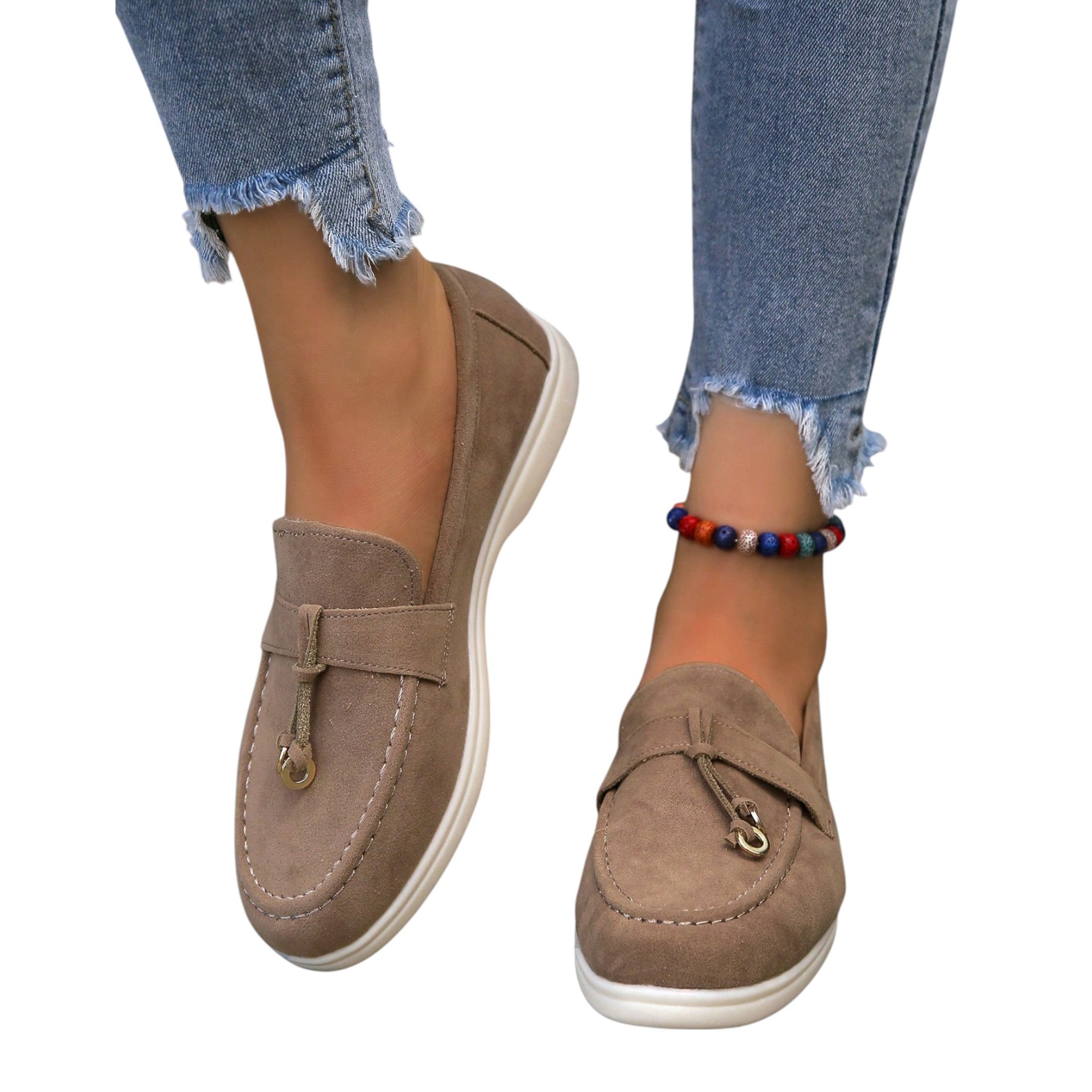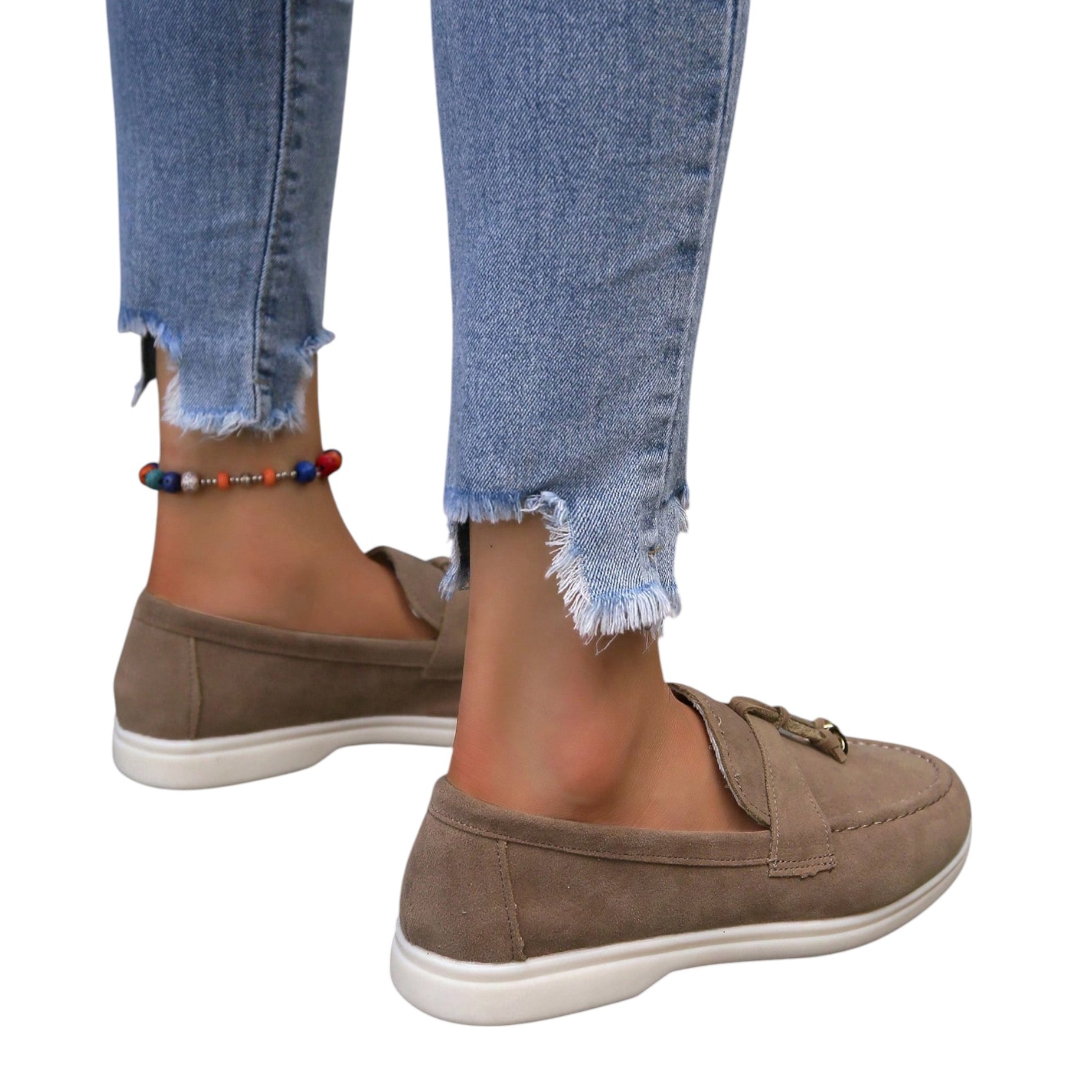 Címke nélküli, barna színű, bebújós loafer, bőr hatású anyagból, rojtos díszítéssel. Belső talp hossz: 24,5cm