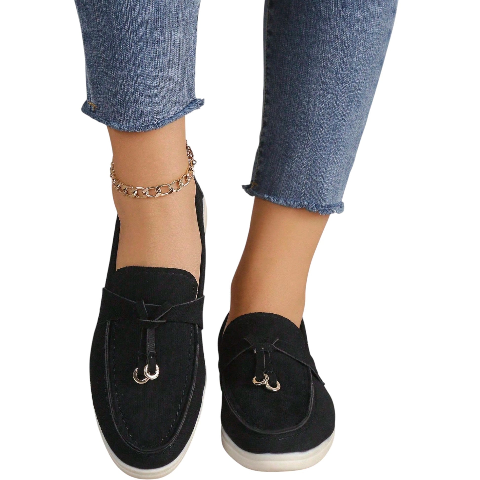 SHE fekete bojttal díszített loafer cipő
