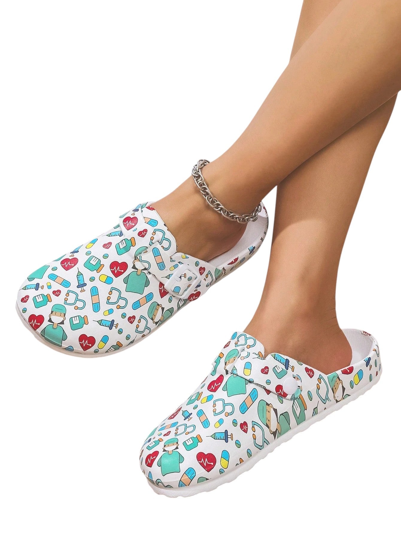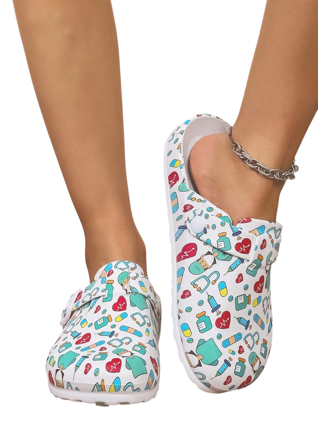 SHE fehér mintás ápolói papucs