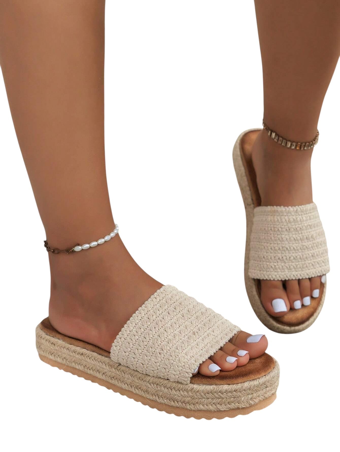 Címke nélküli, bézs, fonott pántos, platform papucs