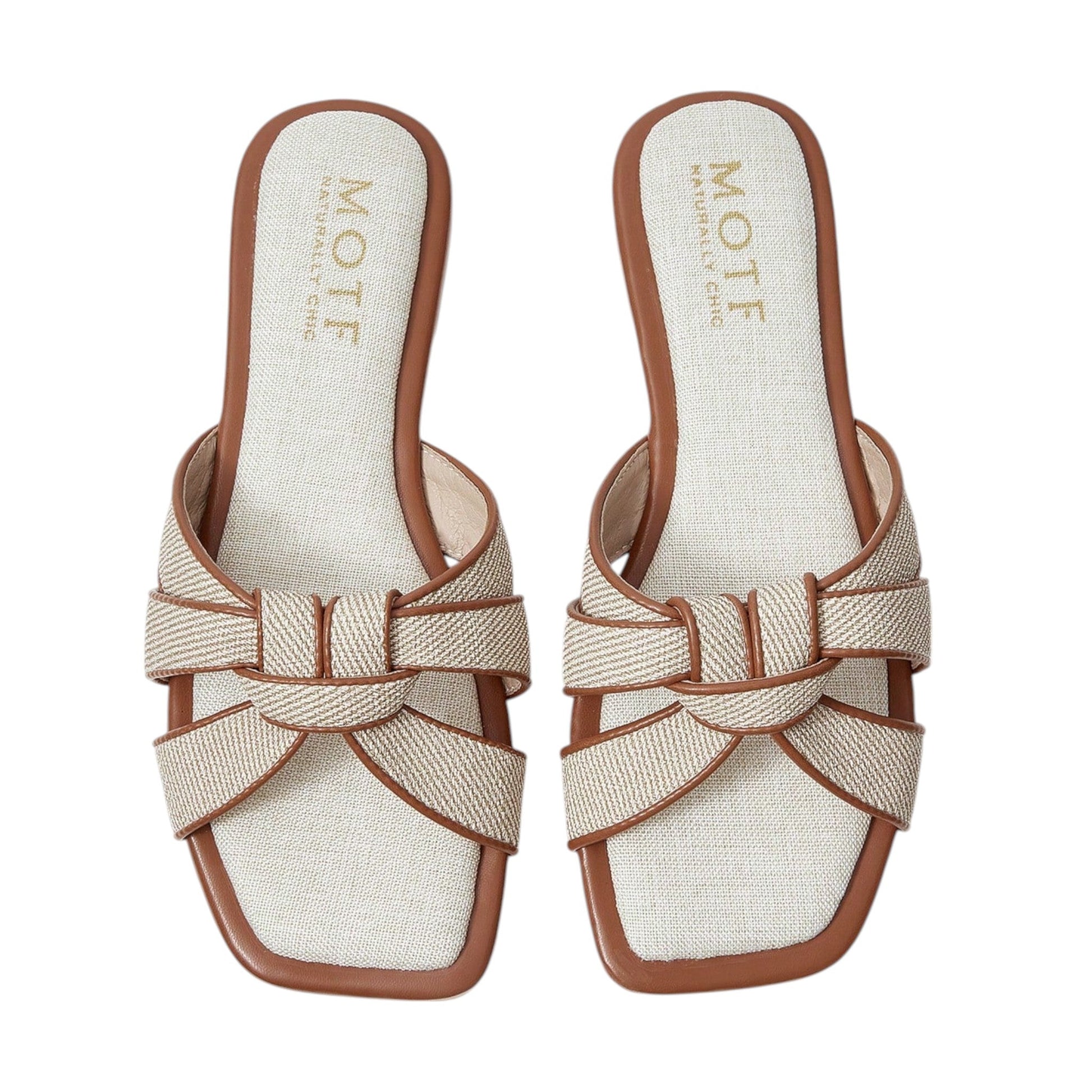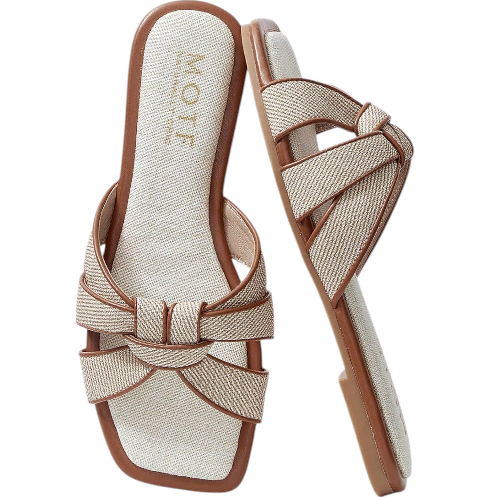 Címke nélküli, bézs, masnis pántos, lapos talpú papucs. Belső talp hossz: 22cm