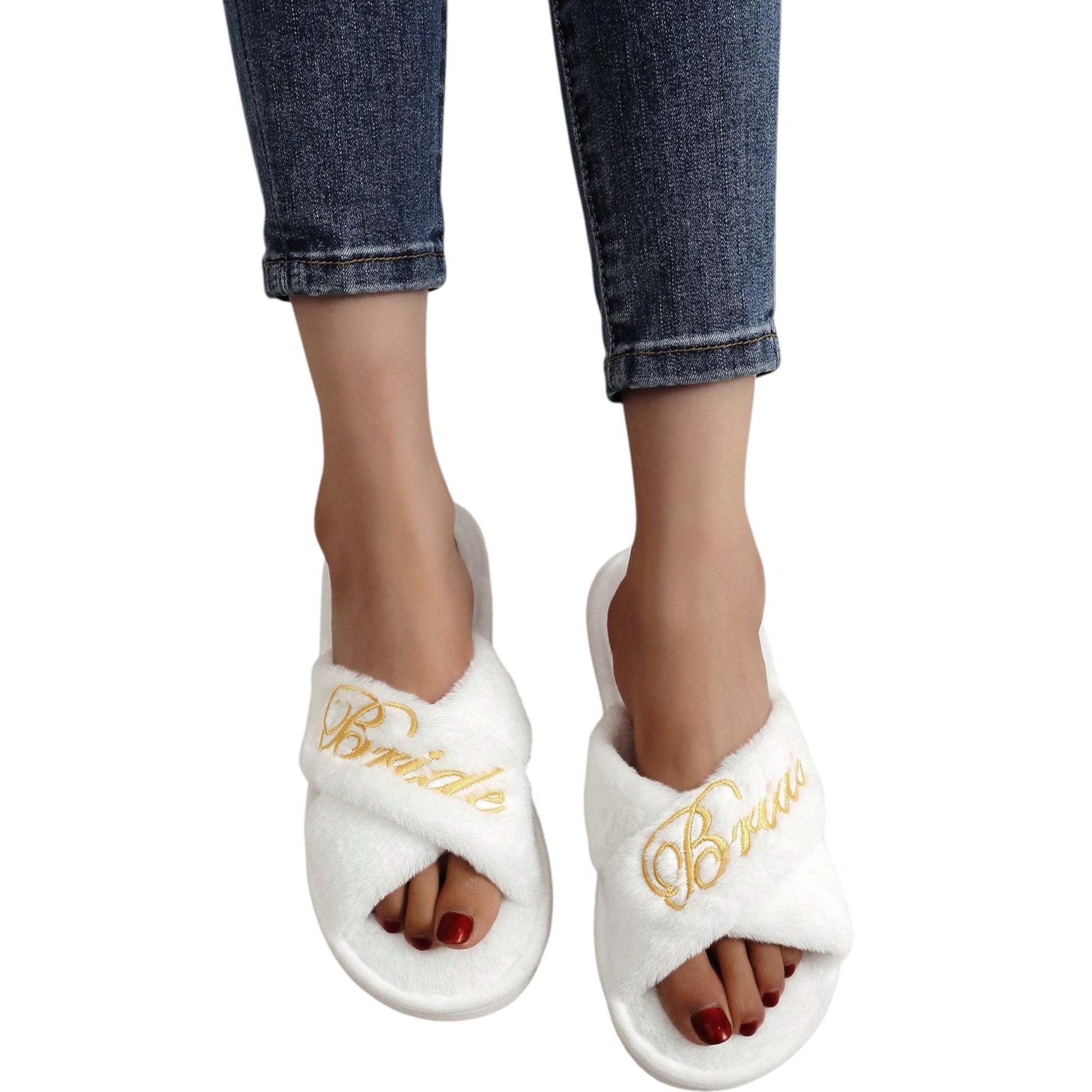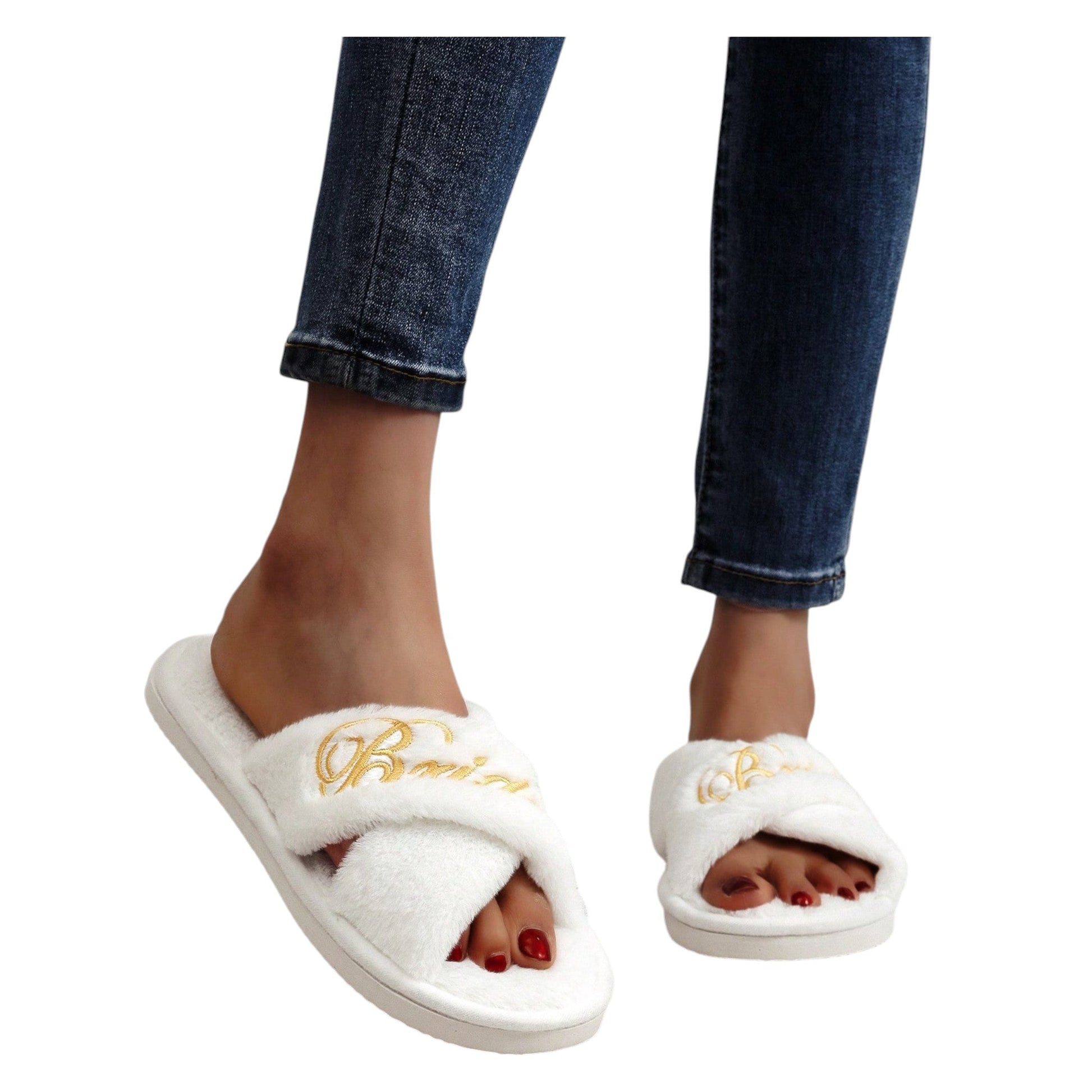Címke nélküli, fehér, keresztpántos, plüss papucs. Belső talp hossz: 25,5cm