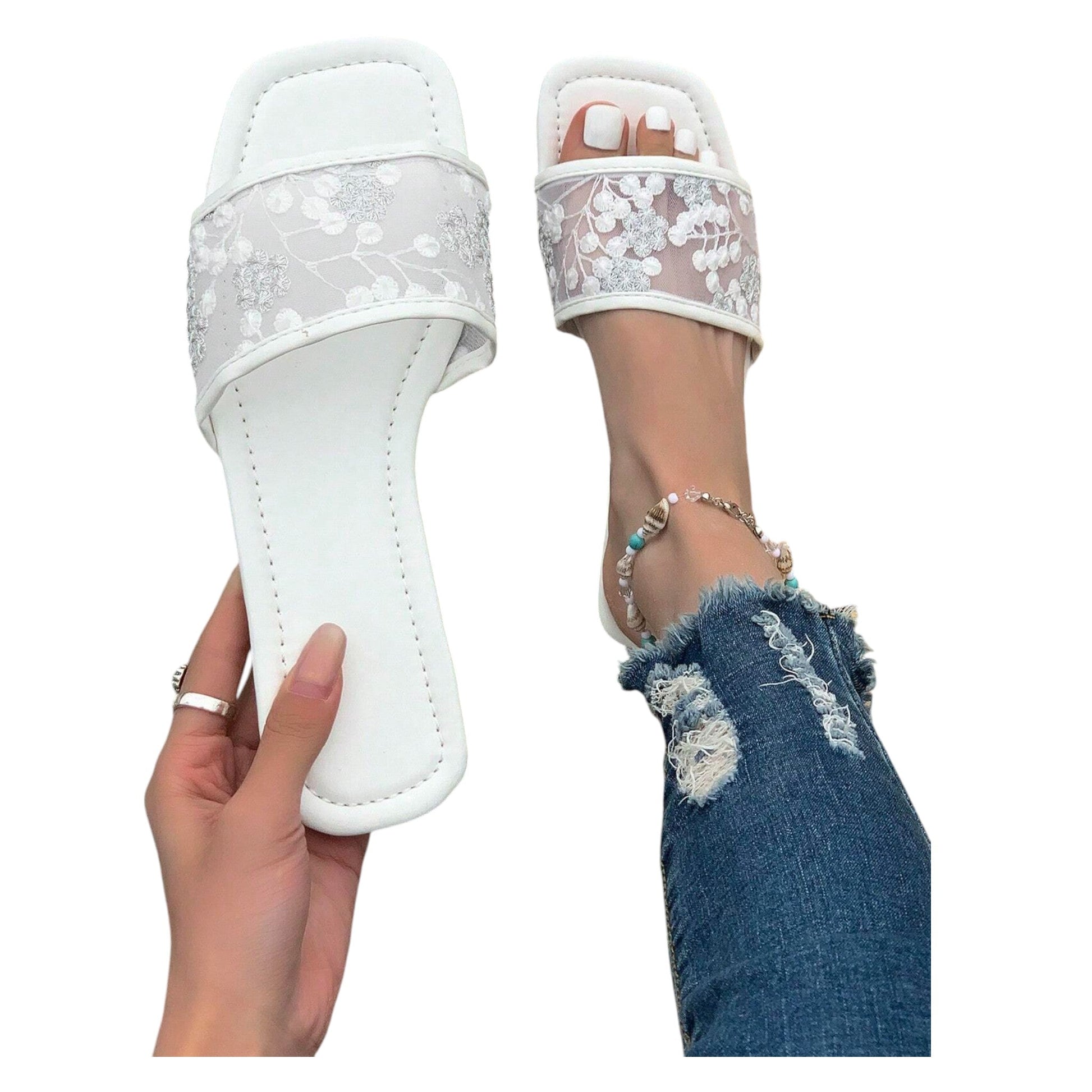 SHE fehér hímzett papucs