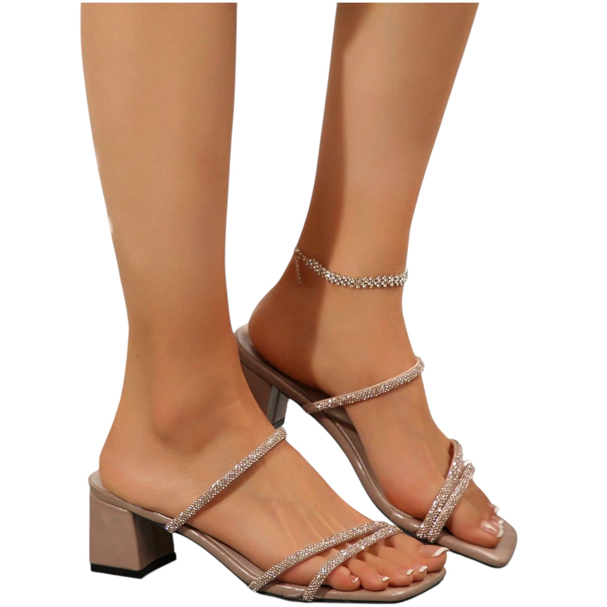 Címke nélküli, bézs színű, pántos papucs, strasszkövekkel díszítve, vastag sarokkal. Belső talp hossz: 25cm
