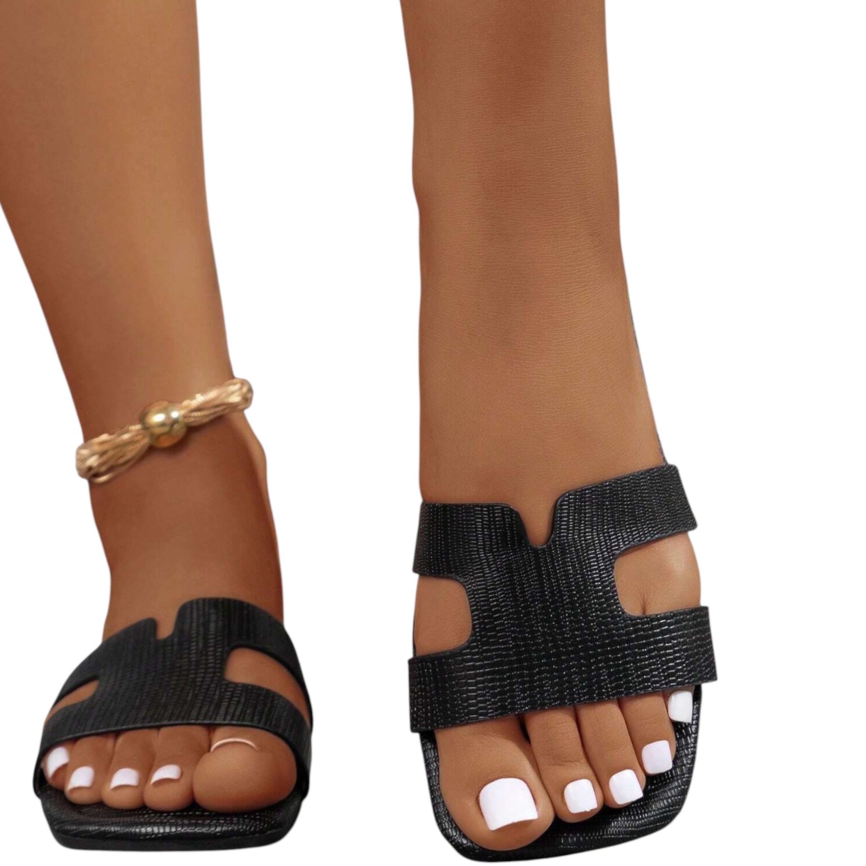 SHE fekete kivágott lapos talpú szandál