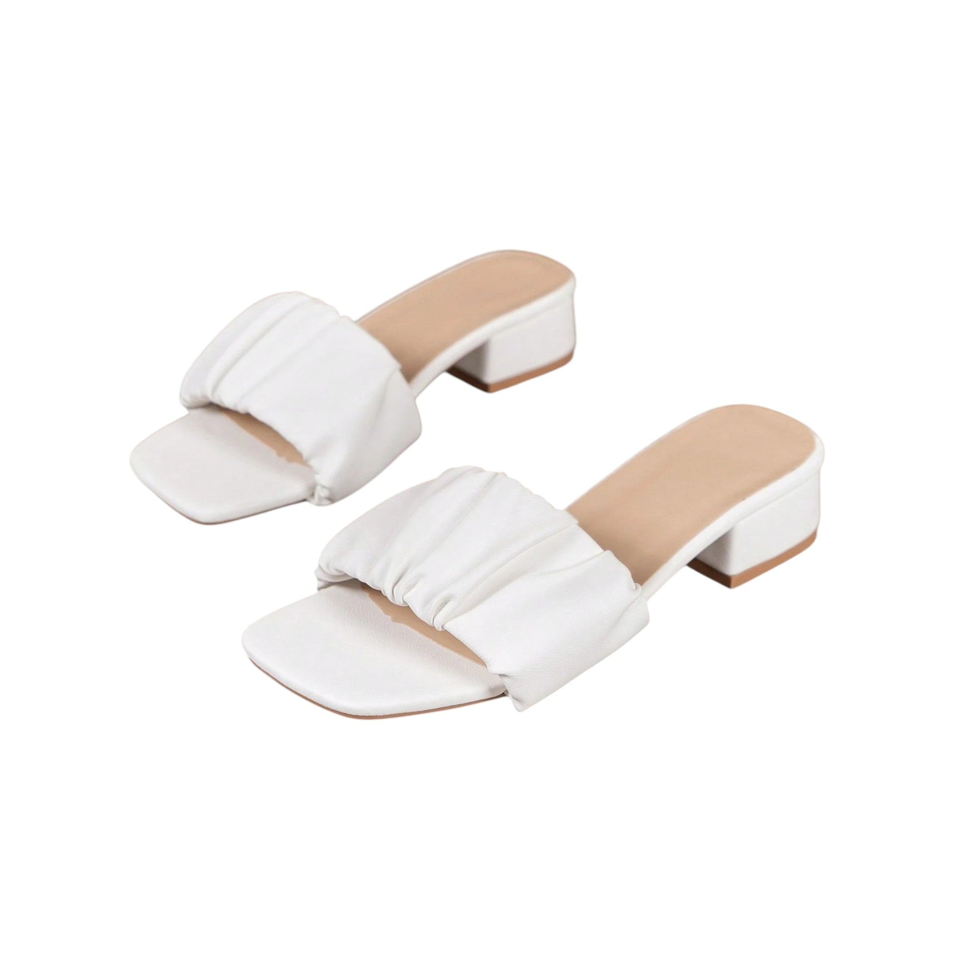 SHE fehér ráncolt tömbsarkú papucs