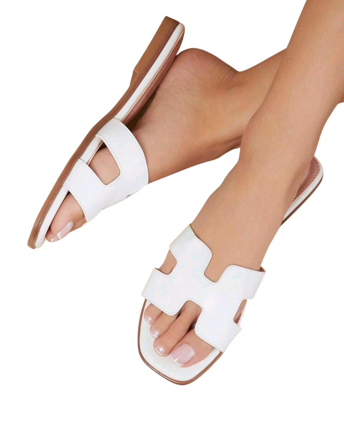 Címke nélküli, fehér, műbőr, papucs, pántos. Belső talp hossz: 26cm