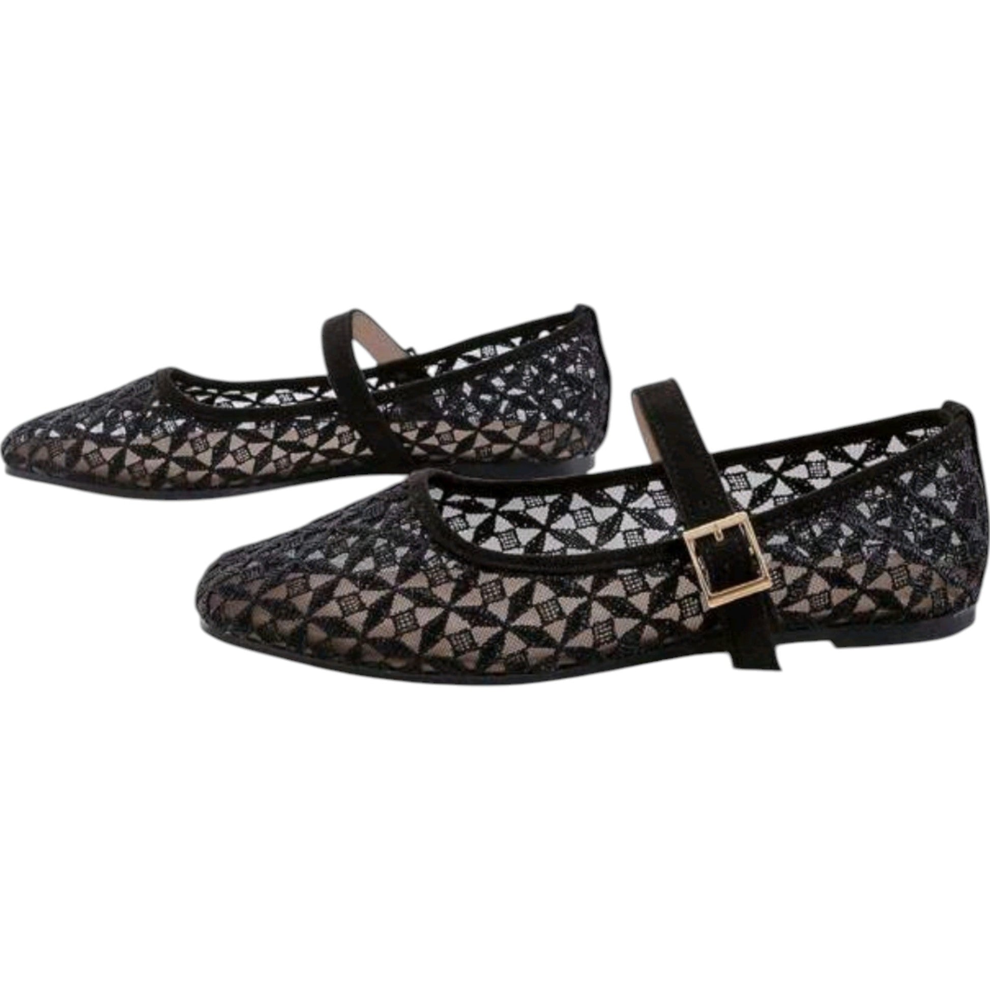 Címke nélküli, fekete, áttetsző, pántos, lapos talpú.
